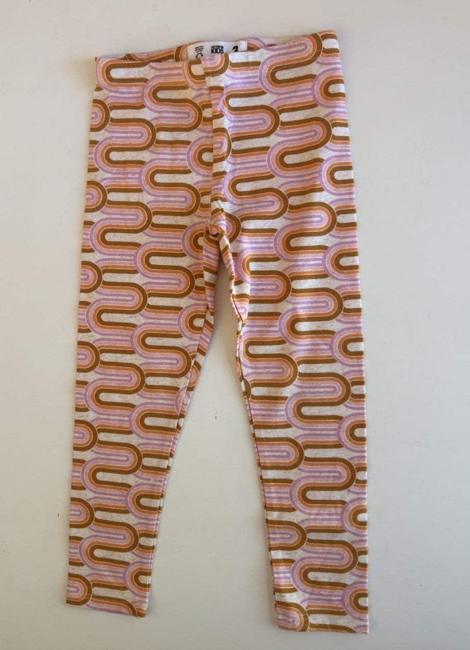 Cotton On Kids girls toddler size 3 orange pink patterned leggings, VG