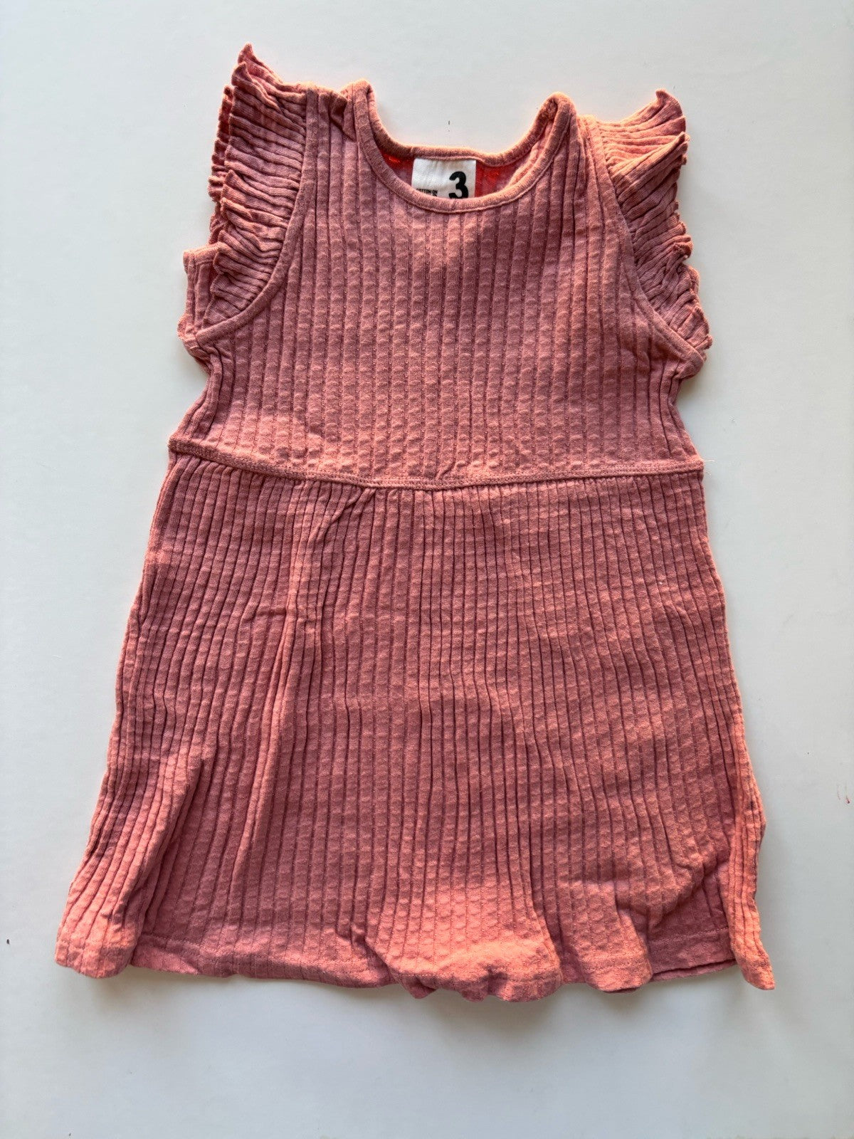 Cotton On Kids girls toddler size 3 pink ribbed short sleeve dress, VG