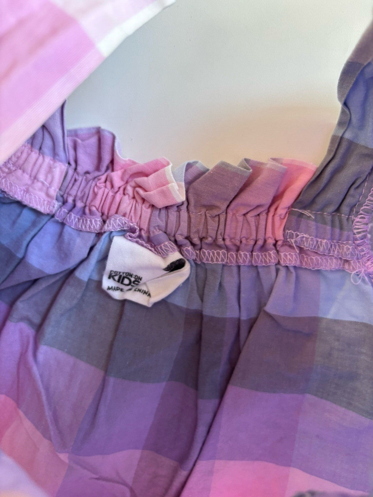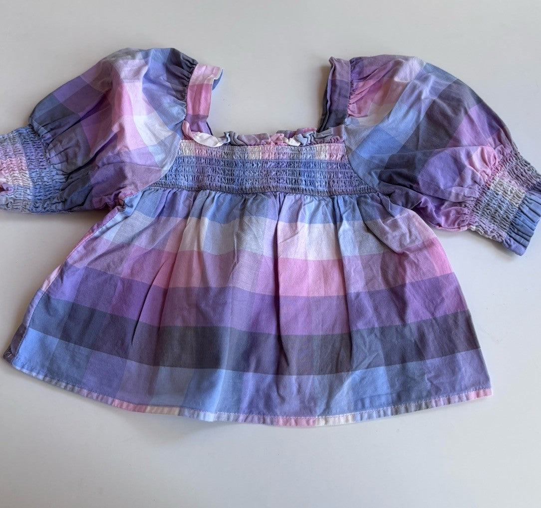 Cotton On Kids girls toddler size 3 purple check puff sleeve top, VGUC