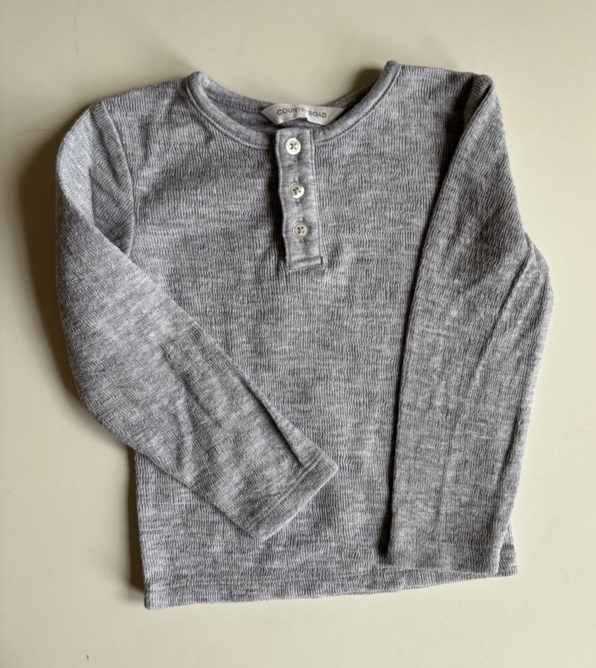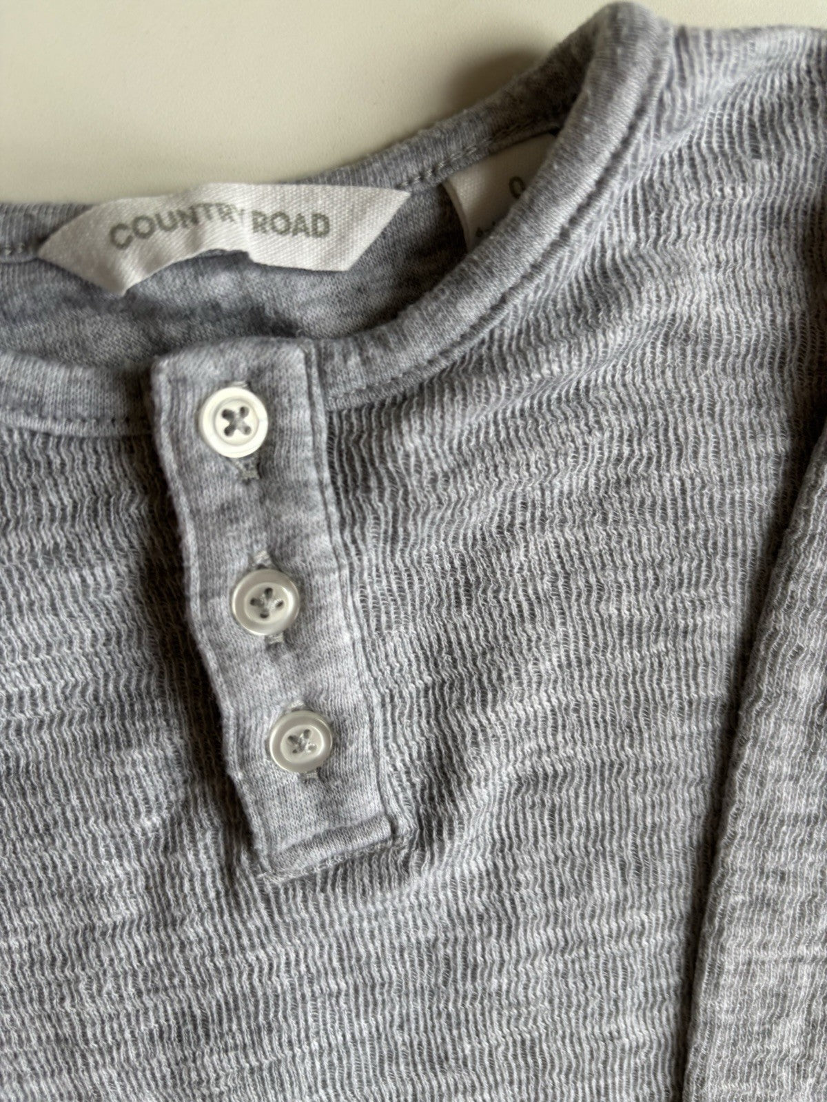 Country Road baby boy size 6-12 months grey henley textured top, VGUC