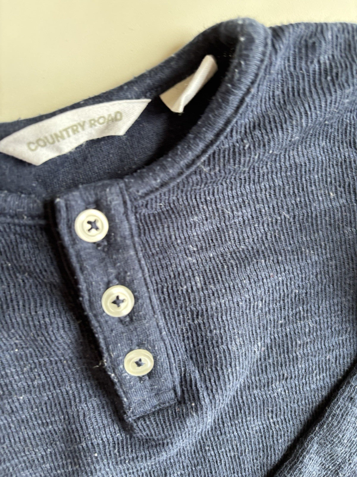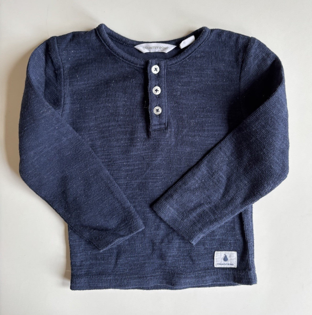Country Road baby boy size 6-12 months navy blue henley textured top,