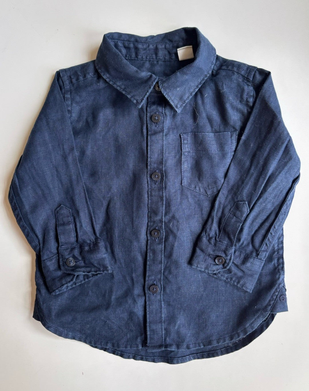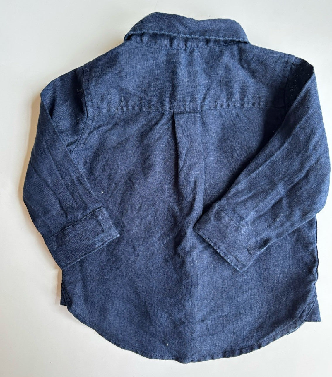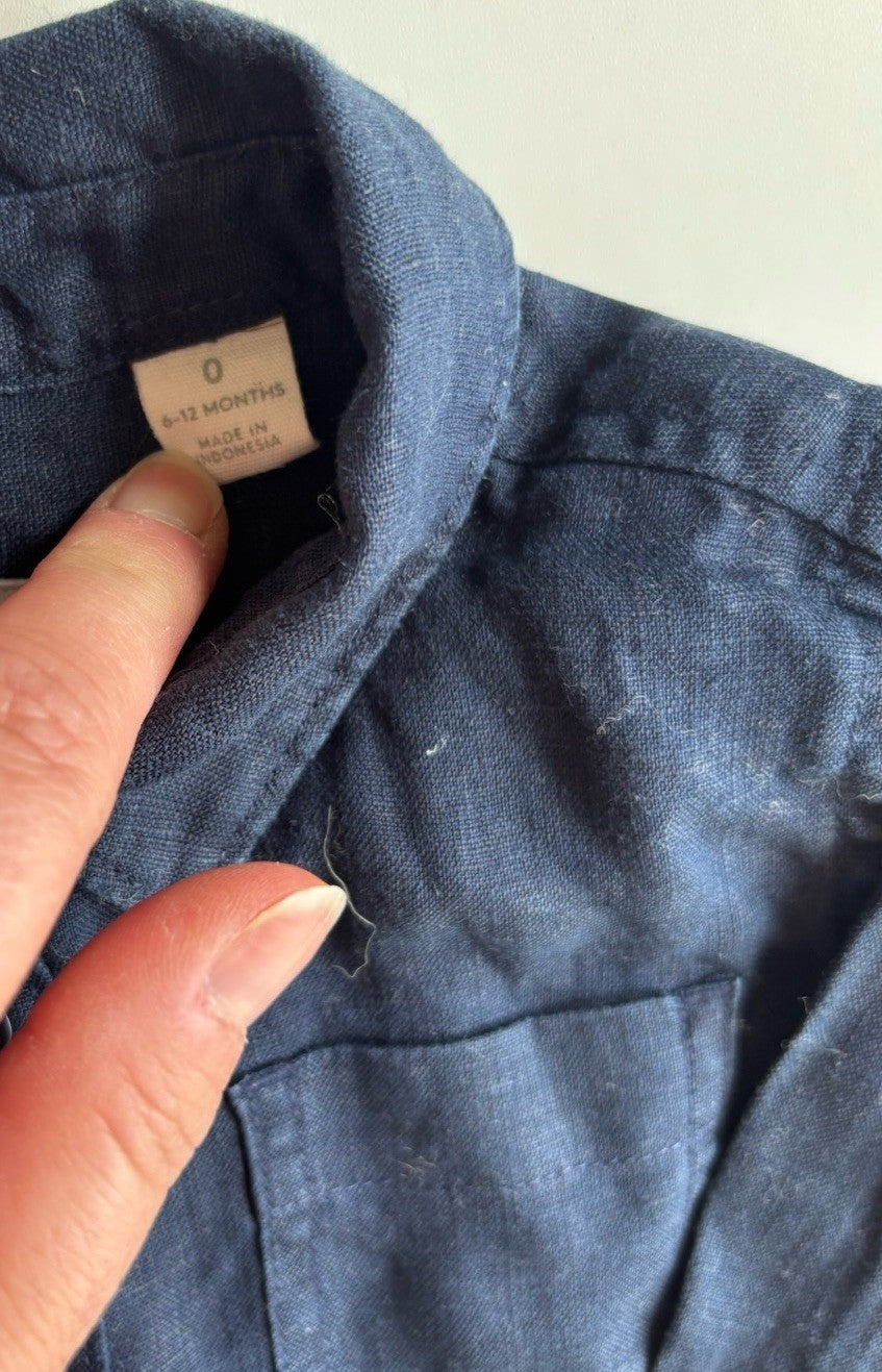 Country Road baby boy size 6-12 months navy blue linen button up shirt, VGUC