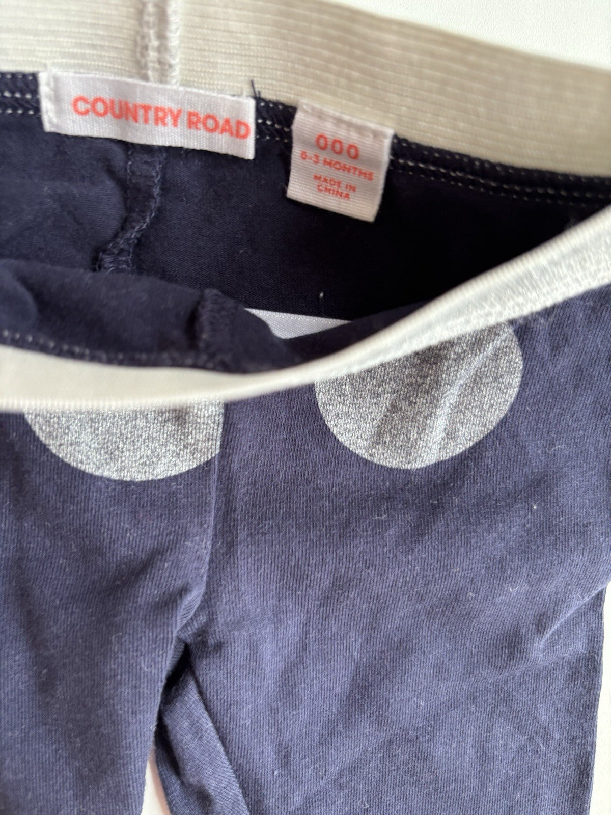 Country Road baby girl size 0-3 months navy blue silver spot leggings,