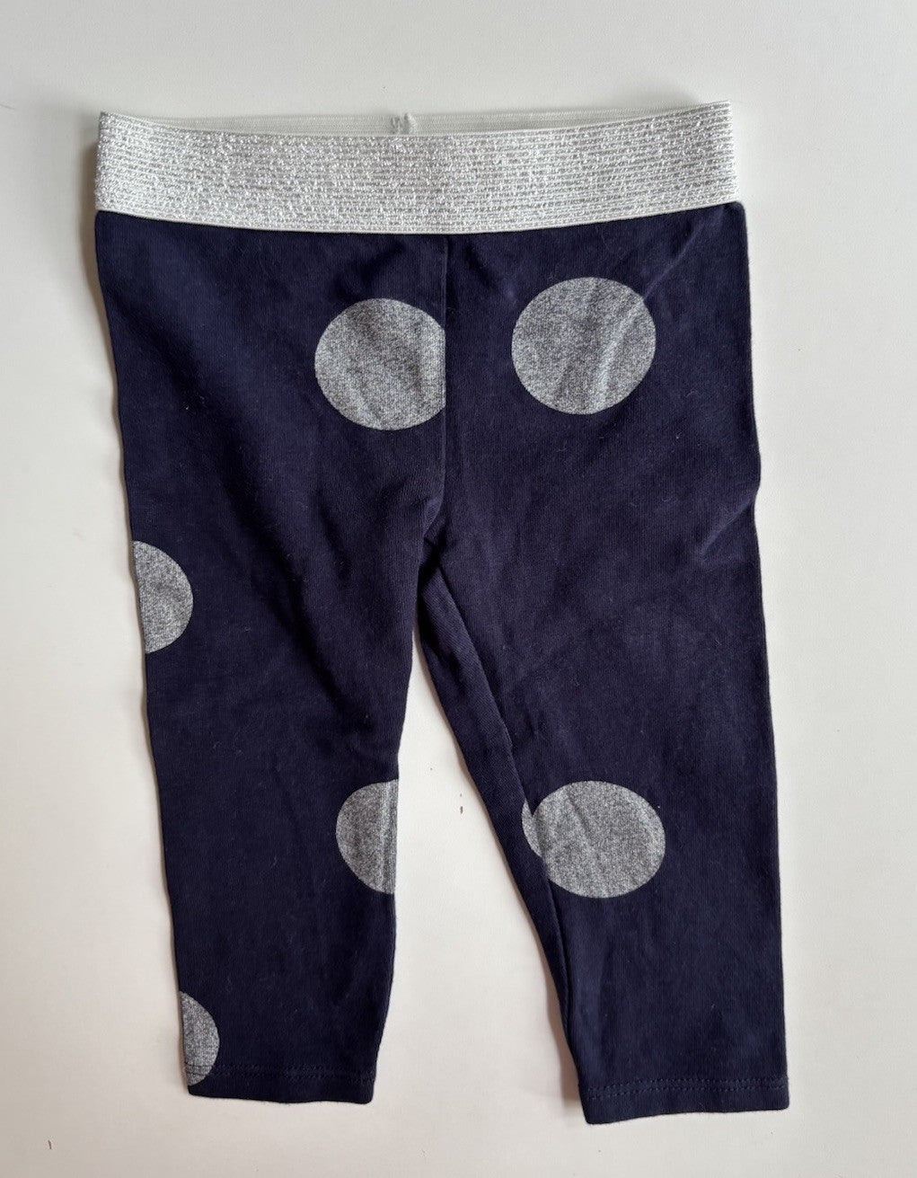 Country Road baby girl size 0-3 months navy blue silver spot leggings, VGUC