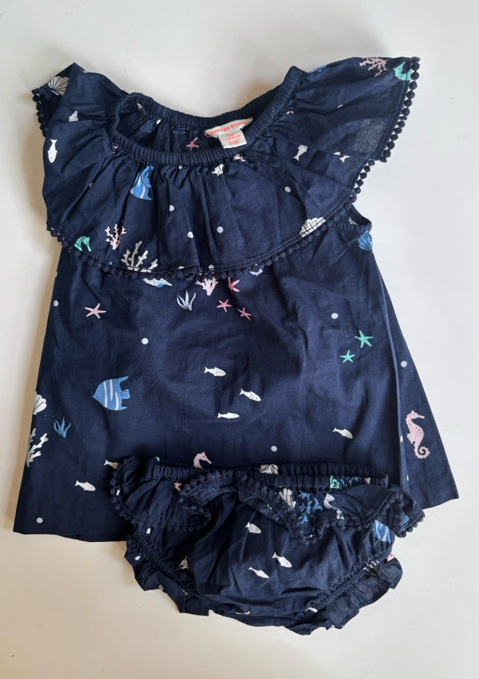 Country Road baby girl size 3-6 months navy blue ocean dress bloomers,