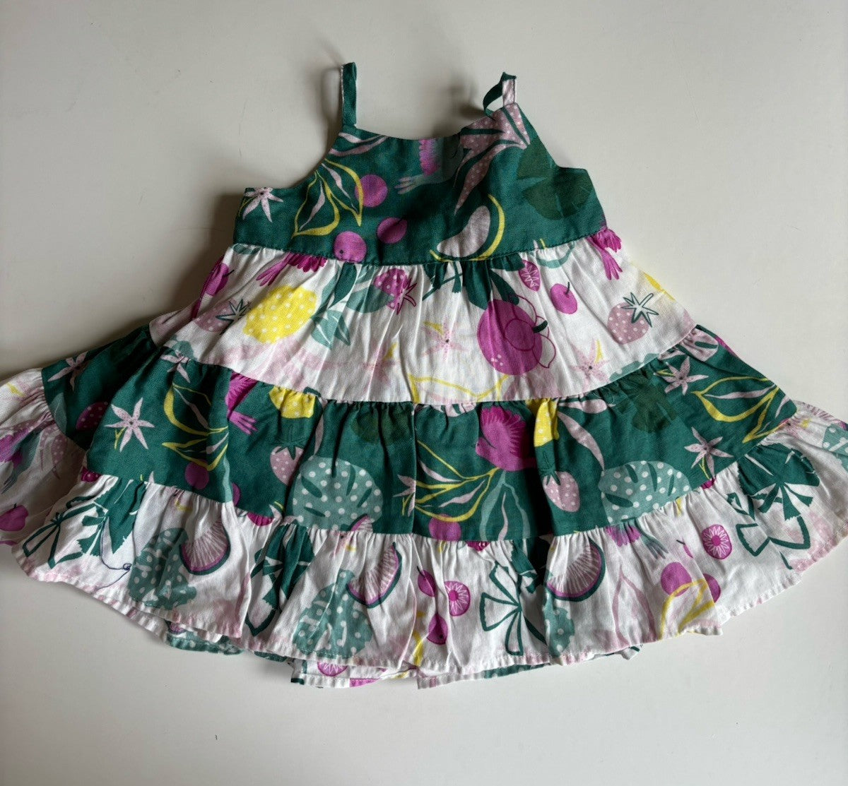 Country Road baby girl size 3-6 months pink green birds fruit dress, V
