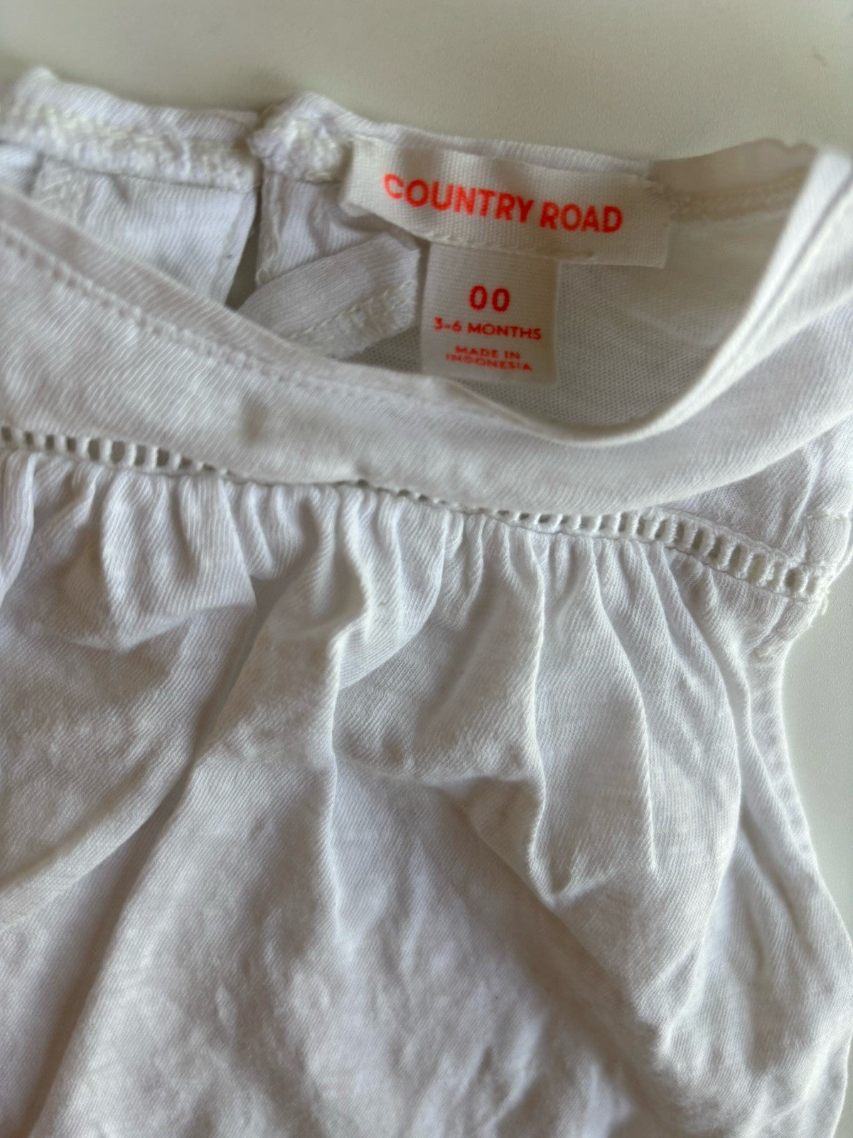 Country Road baby girl size 3-6 months white frill sleeve top, VGUC