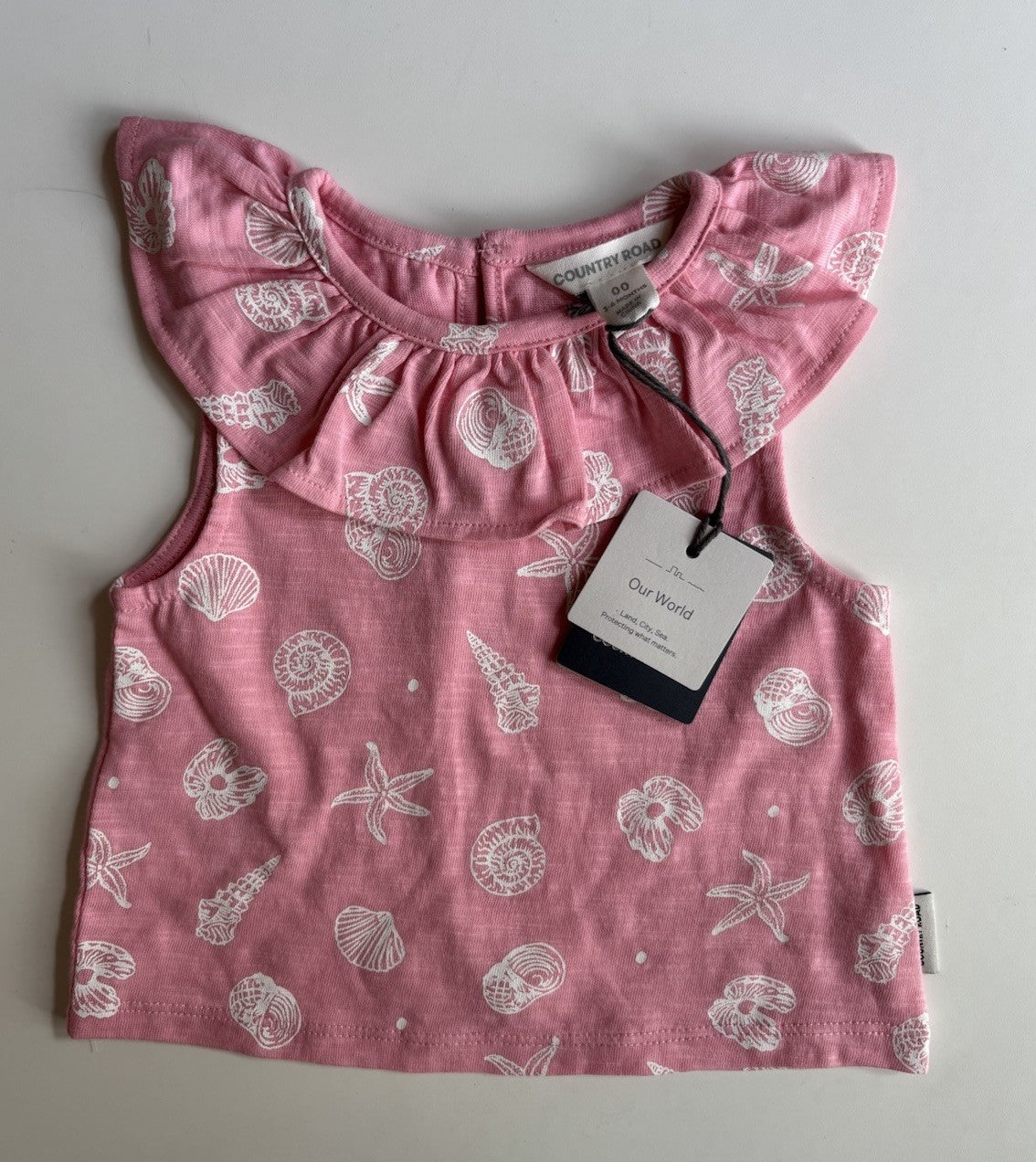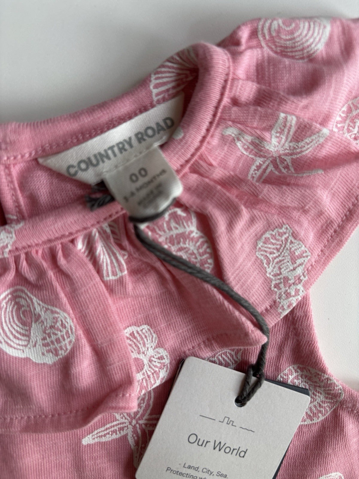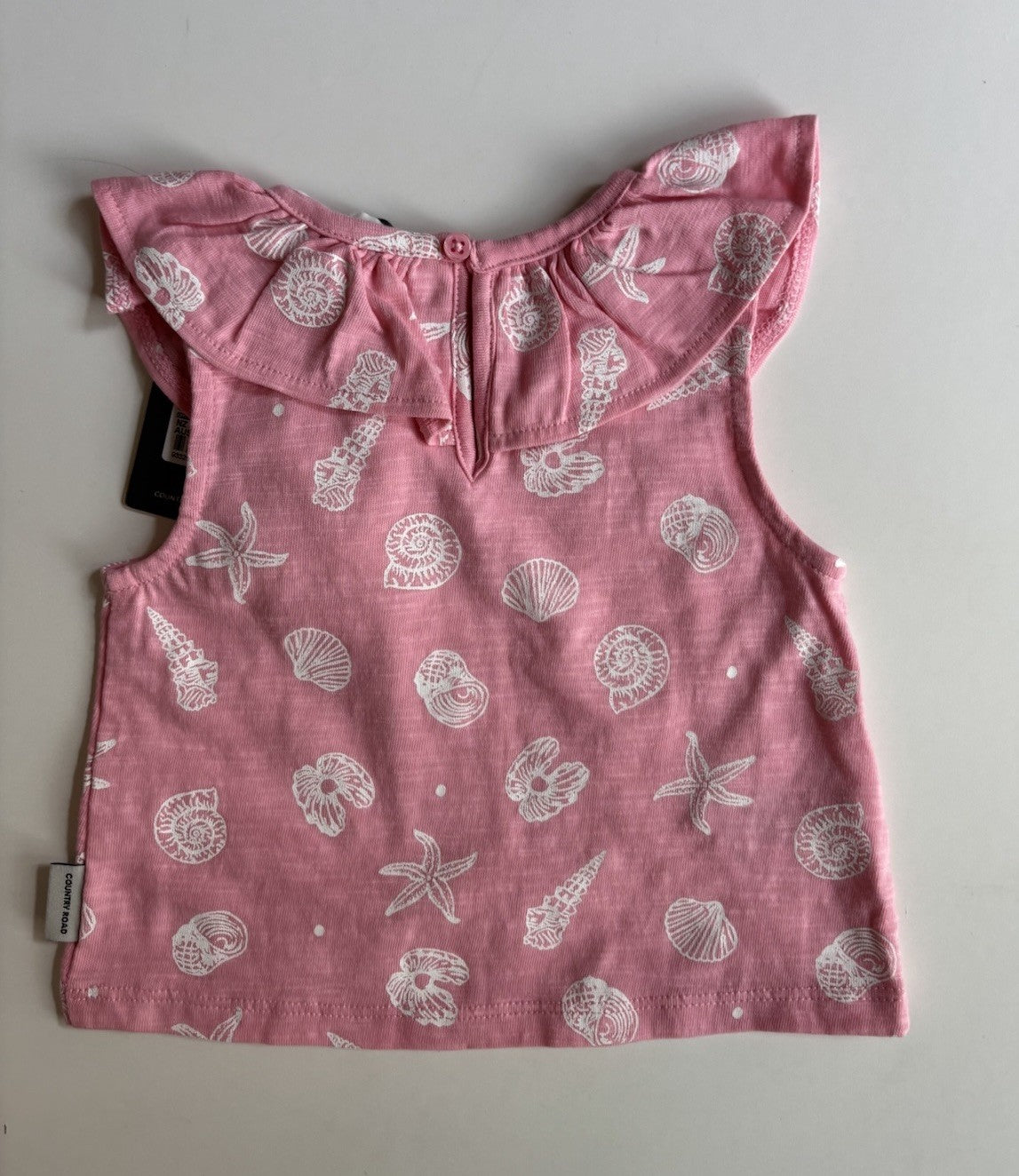 Country Road baby girl size 3-6 months pink white shells collared top, BNWT