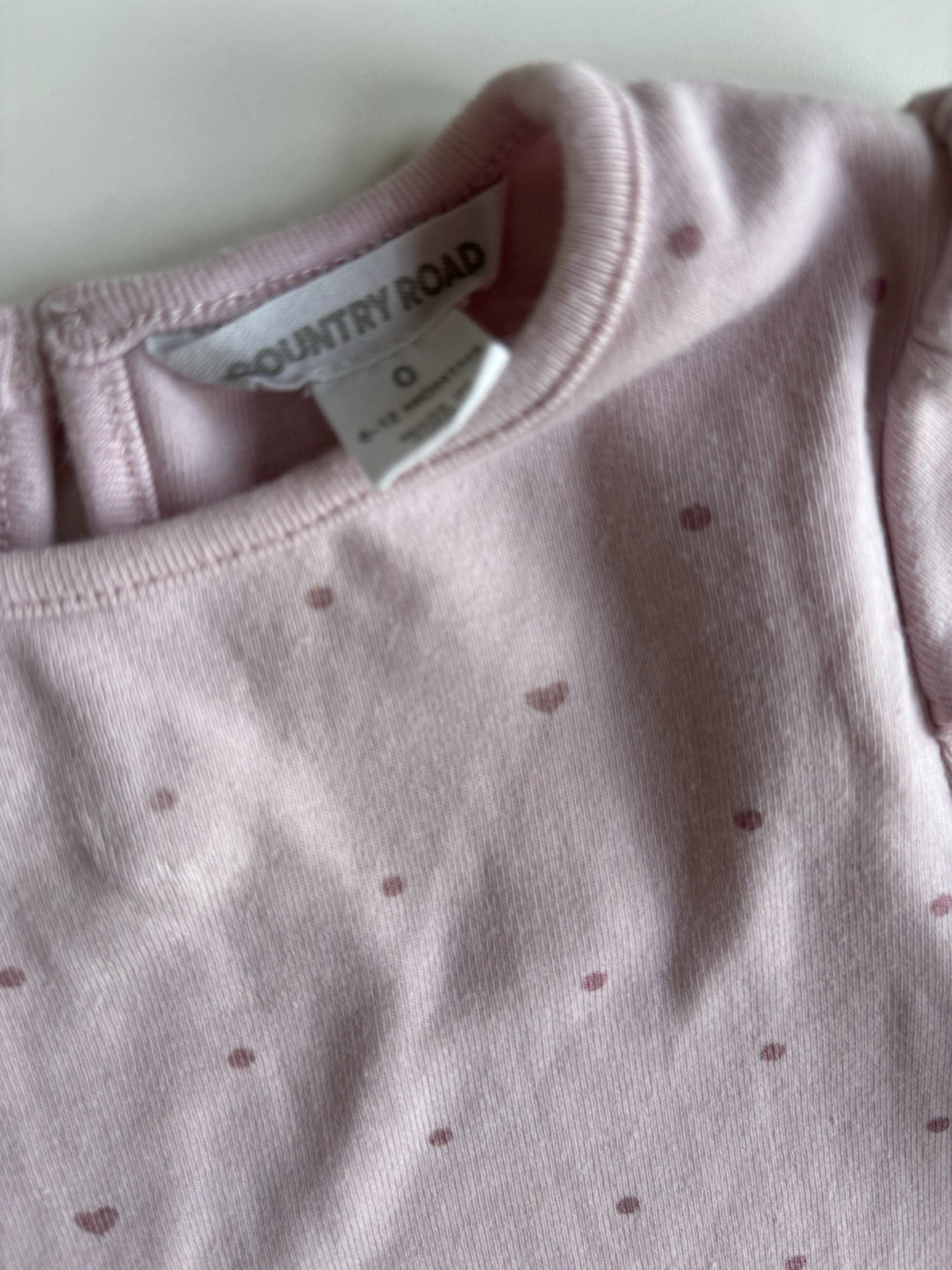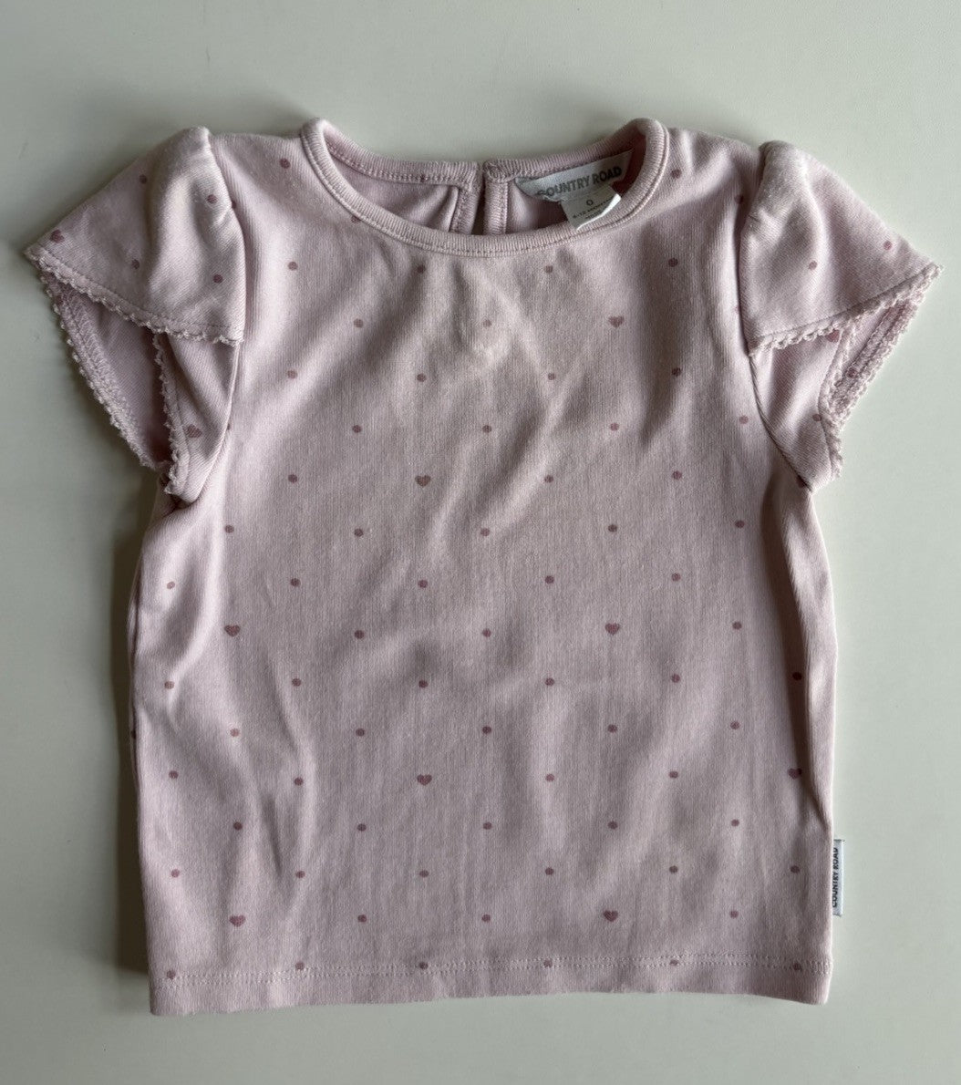 Country Road baby girl size 6-12 months pink hearts spot top t-shirt,