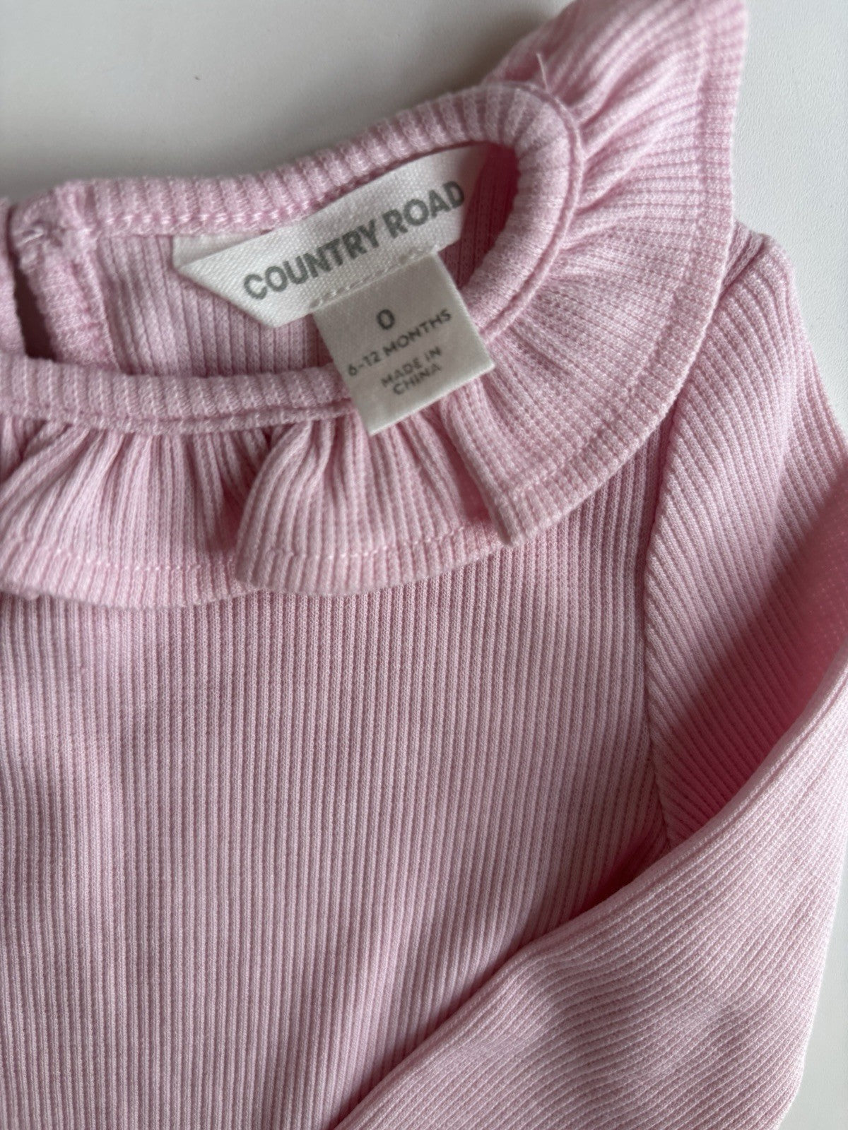 Country Road baby girl size 6-12 months pink ribbed collared top, VGUC