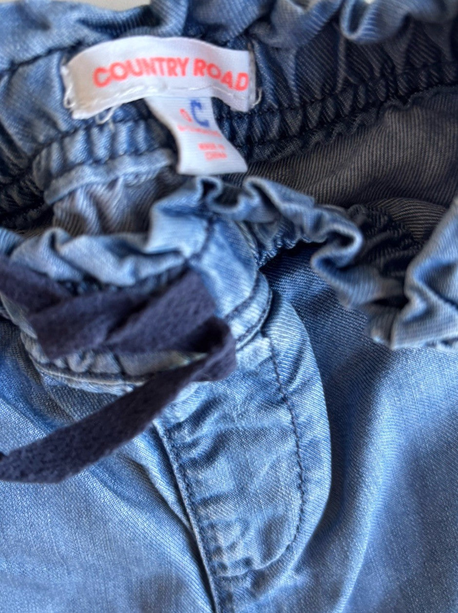 Country Road baby girl size 6-12 months blue chambre denim pants, VGUC