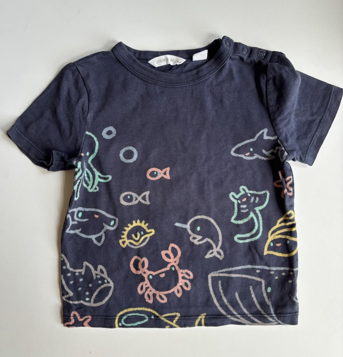 Country Road baby size 12-18 months navy blue t-shirt ocean animals, V