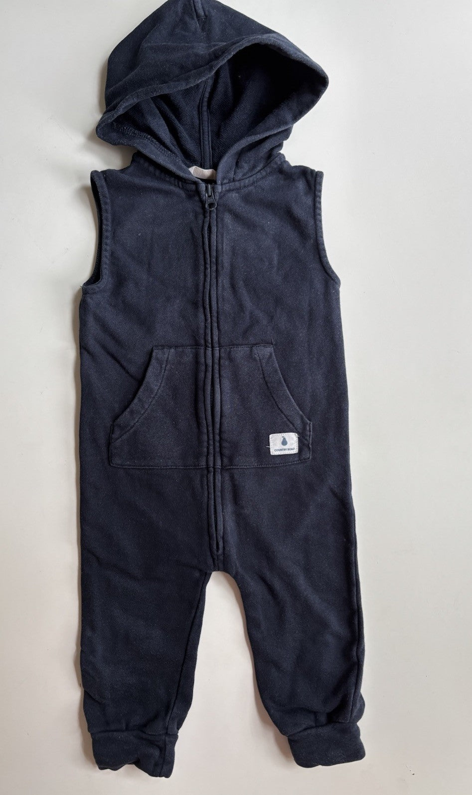 Country Road baby size 6-12 months navy blue hooded sleeveless jumpsuit, VGUC