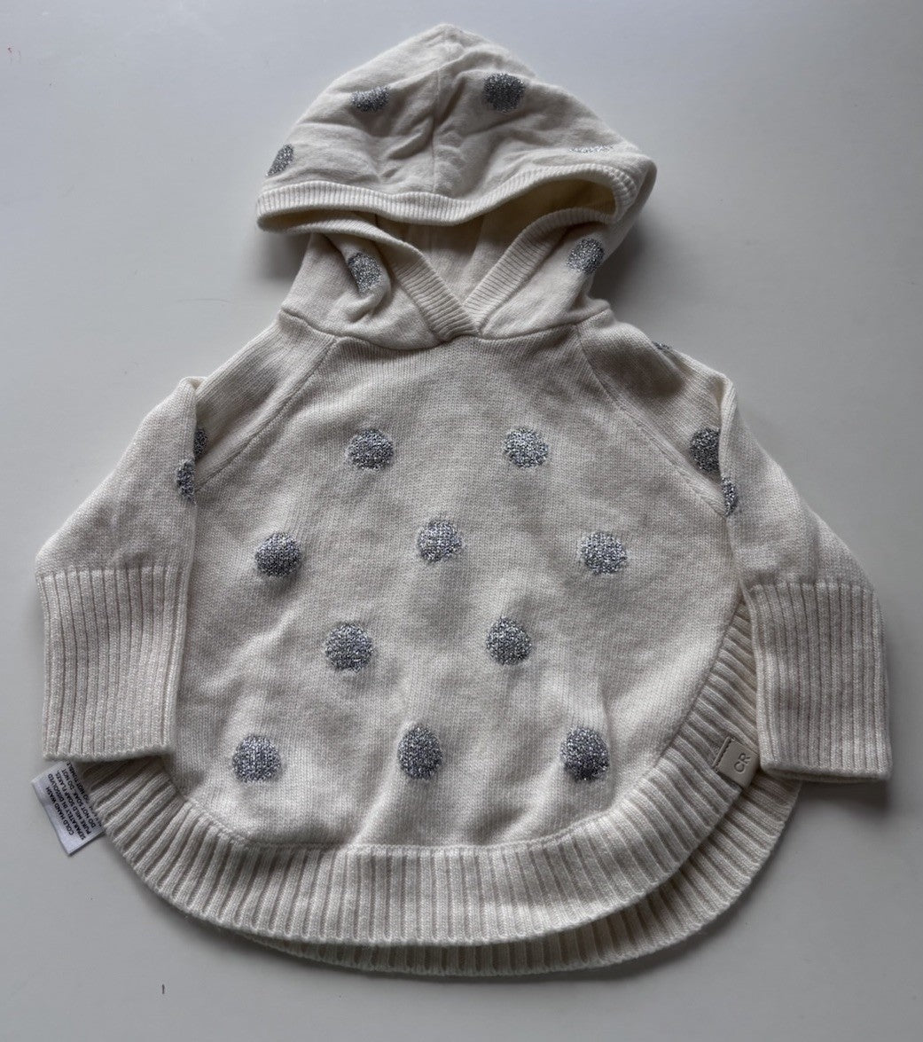 Country Road baby size M approx. 6-12 months white silver spot knit poncho, VGUC