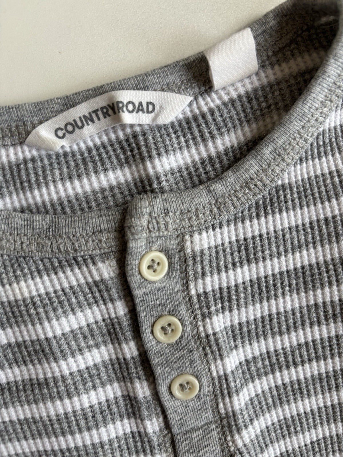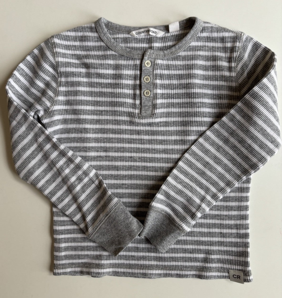 Country Road kids boys size 6 grey white stripe waffle henley top, VGUC