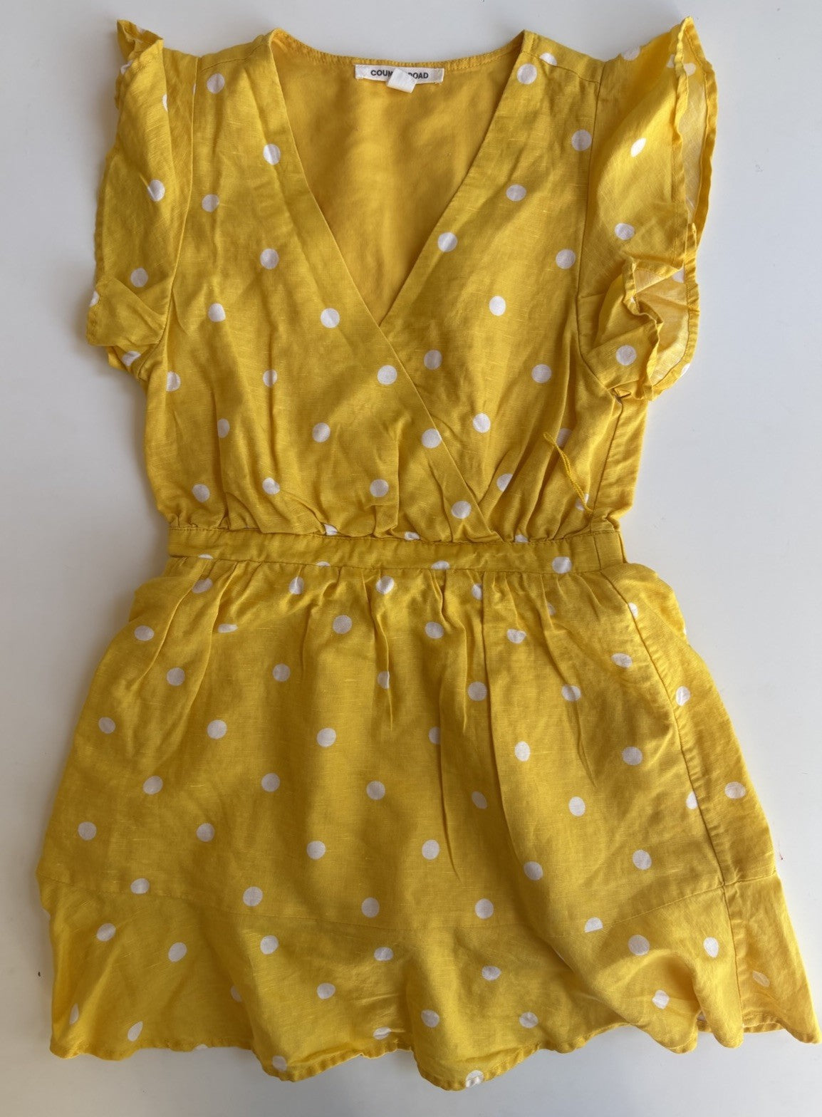 Country Road kids girls size 10 yellow white spot linen blend dress, V