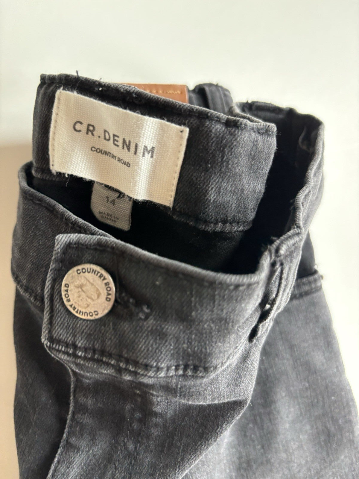 Country Road kids girls size 14 black distressed denim jeans pants, VG