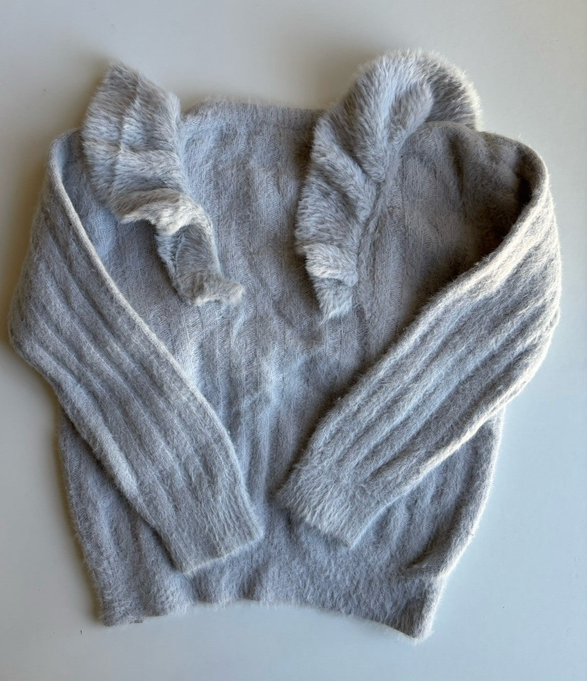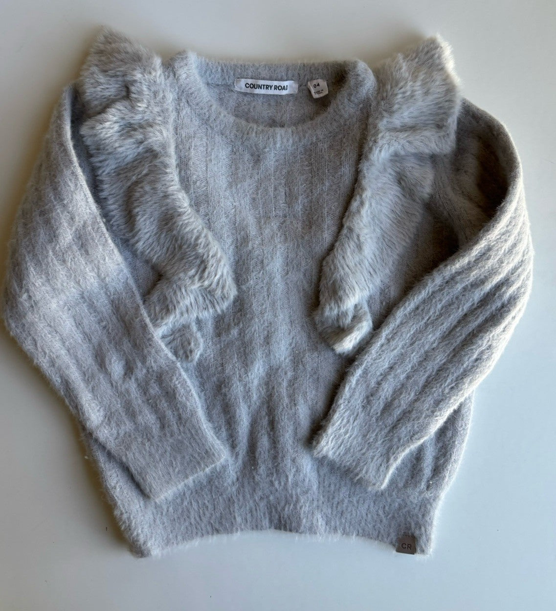 Country Road kids girls size 4 grey fluffy knitted frill sleeve jumper, VGUC