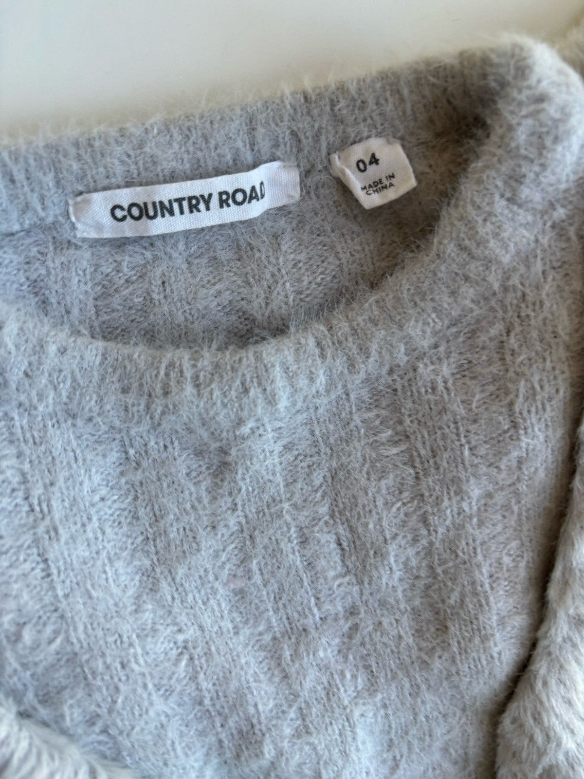 Country Road kids girls size 4 grey fluffy knitted frill sleeve jumper