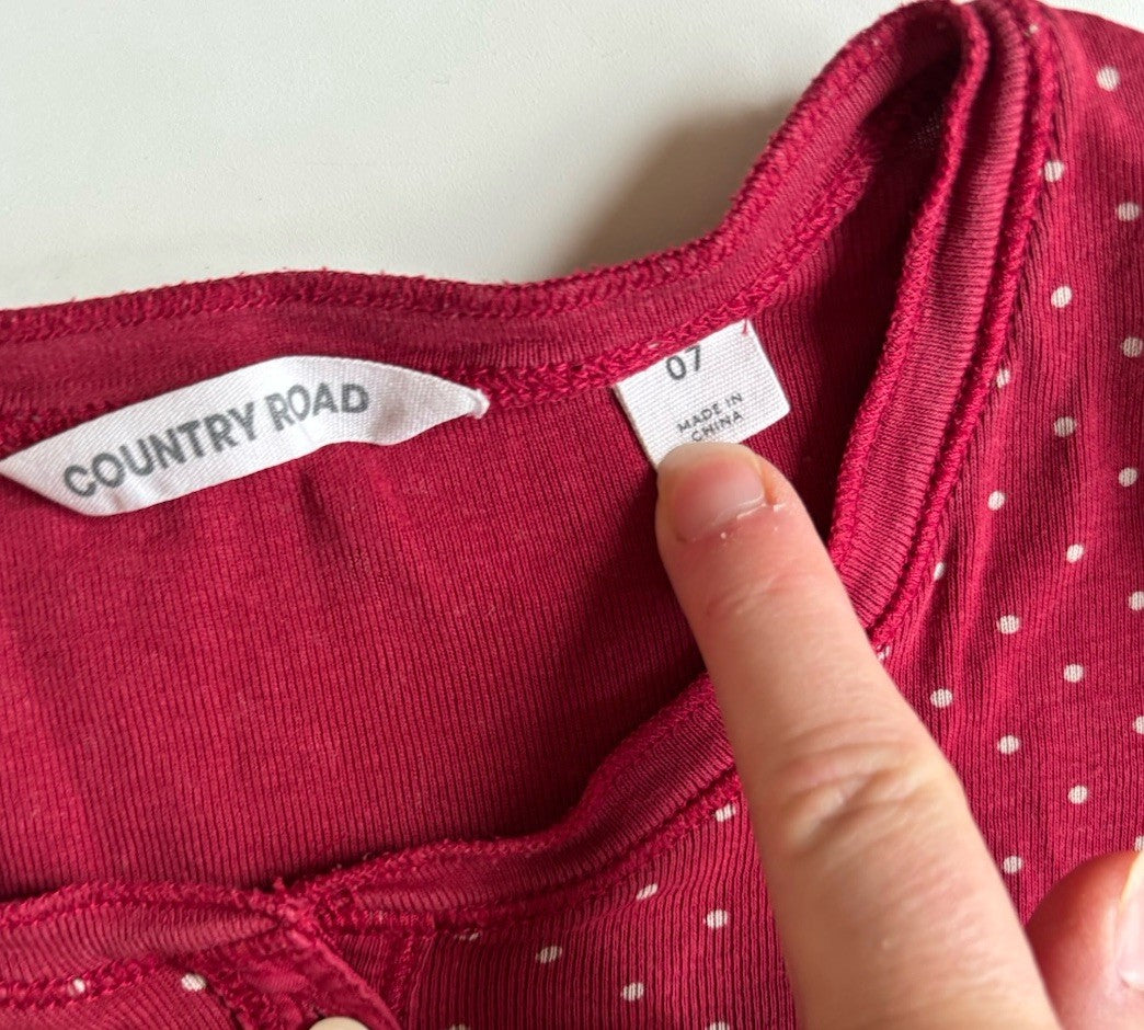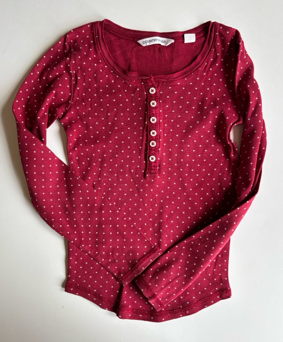 Country Road kids girls size 7 red white spotted long sleeve top, GUC