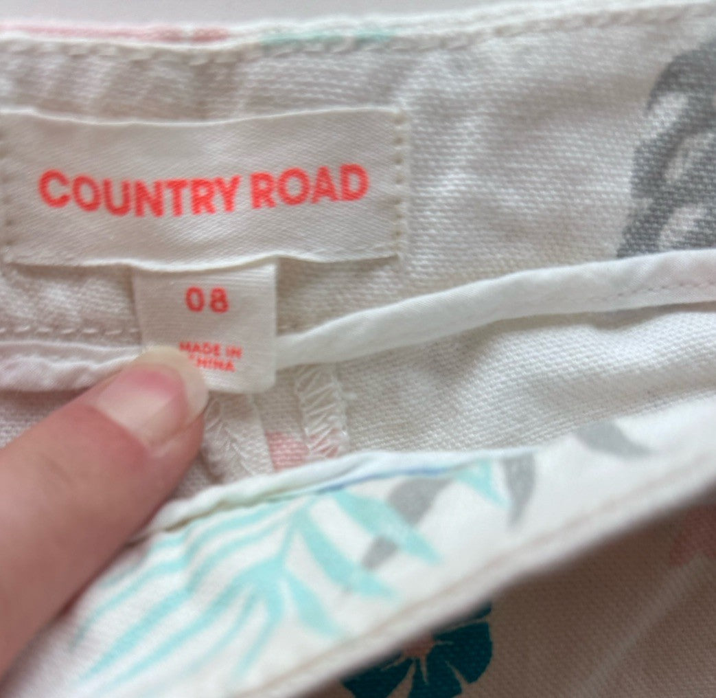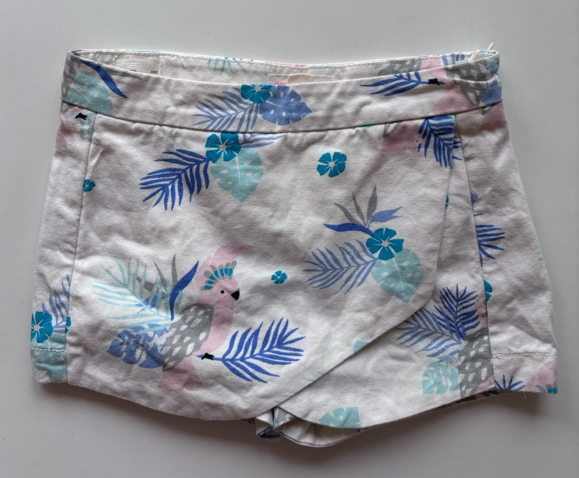Country Road kids girls size 8 white pink cockatoos skort, VGUC