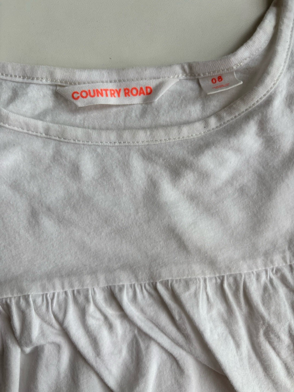 Country Road kids girls size 8 white short sleeve frill sleeve top, VG