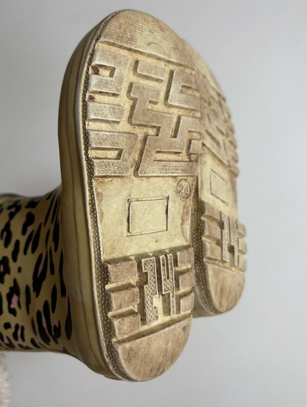 Country Road kids girls size EUR 24 yellow black leopard print gumboots, GUC