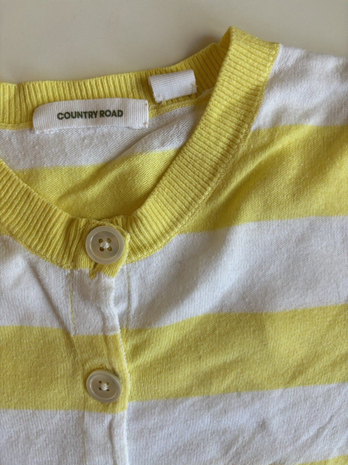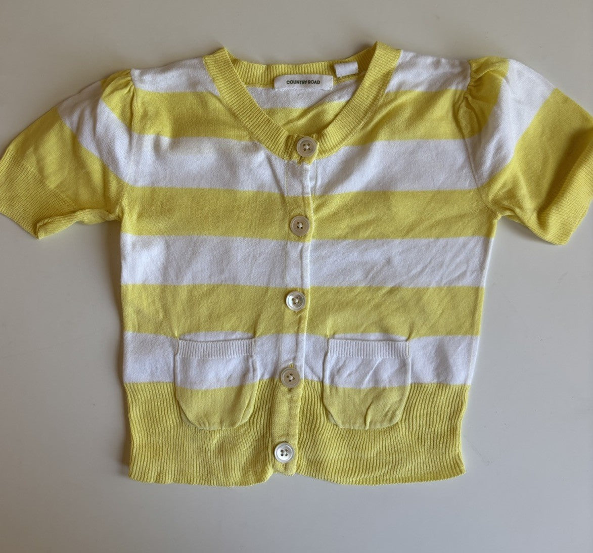 Country Road kids girls toddler size 2 yellow white knit stripe cardigan, VGUC