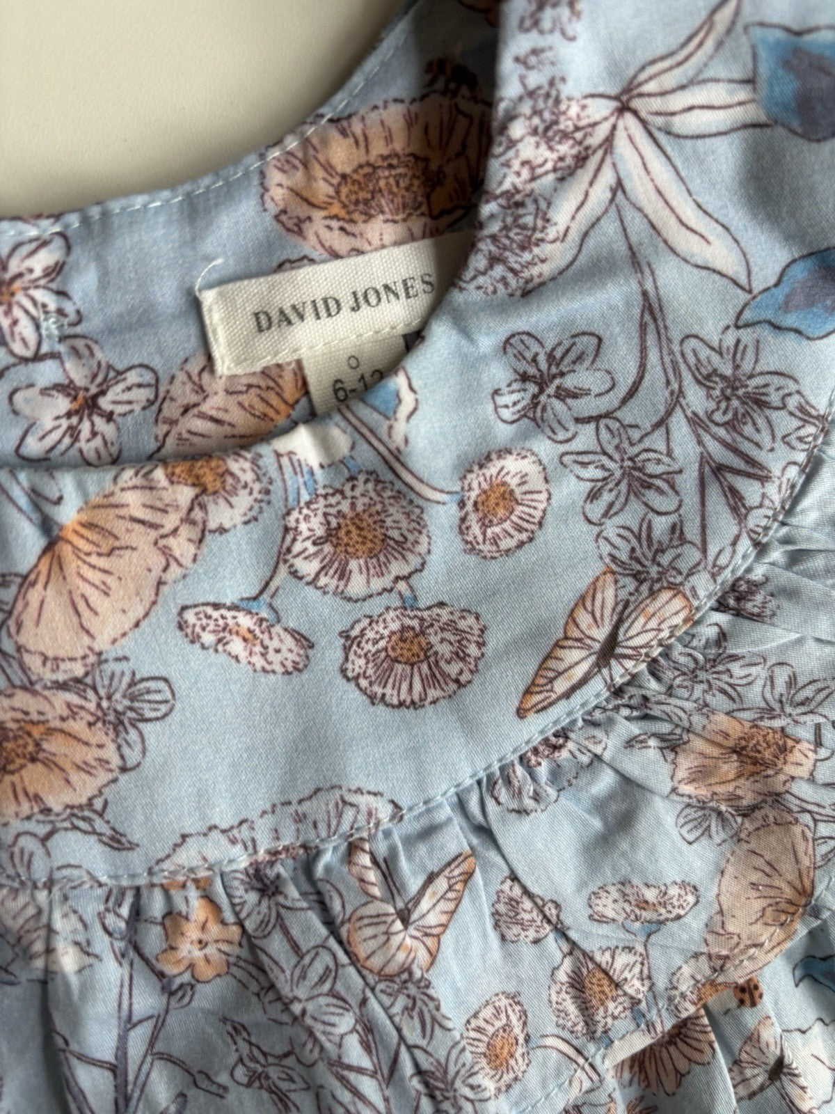 David Jones baby girl size 6-12 months blue floral collared dress, VGUC