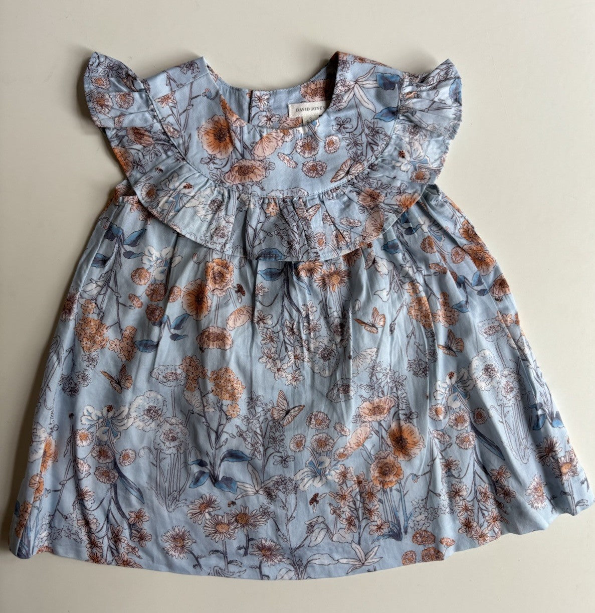 David Jones baby girl size 6-12 months blue floral collared dress, VGU