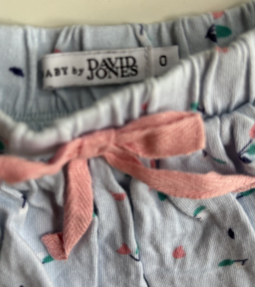 David Jones baby girl size 6-12 months blue pink floral skirt, VGUC