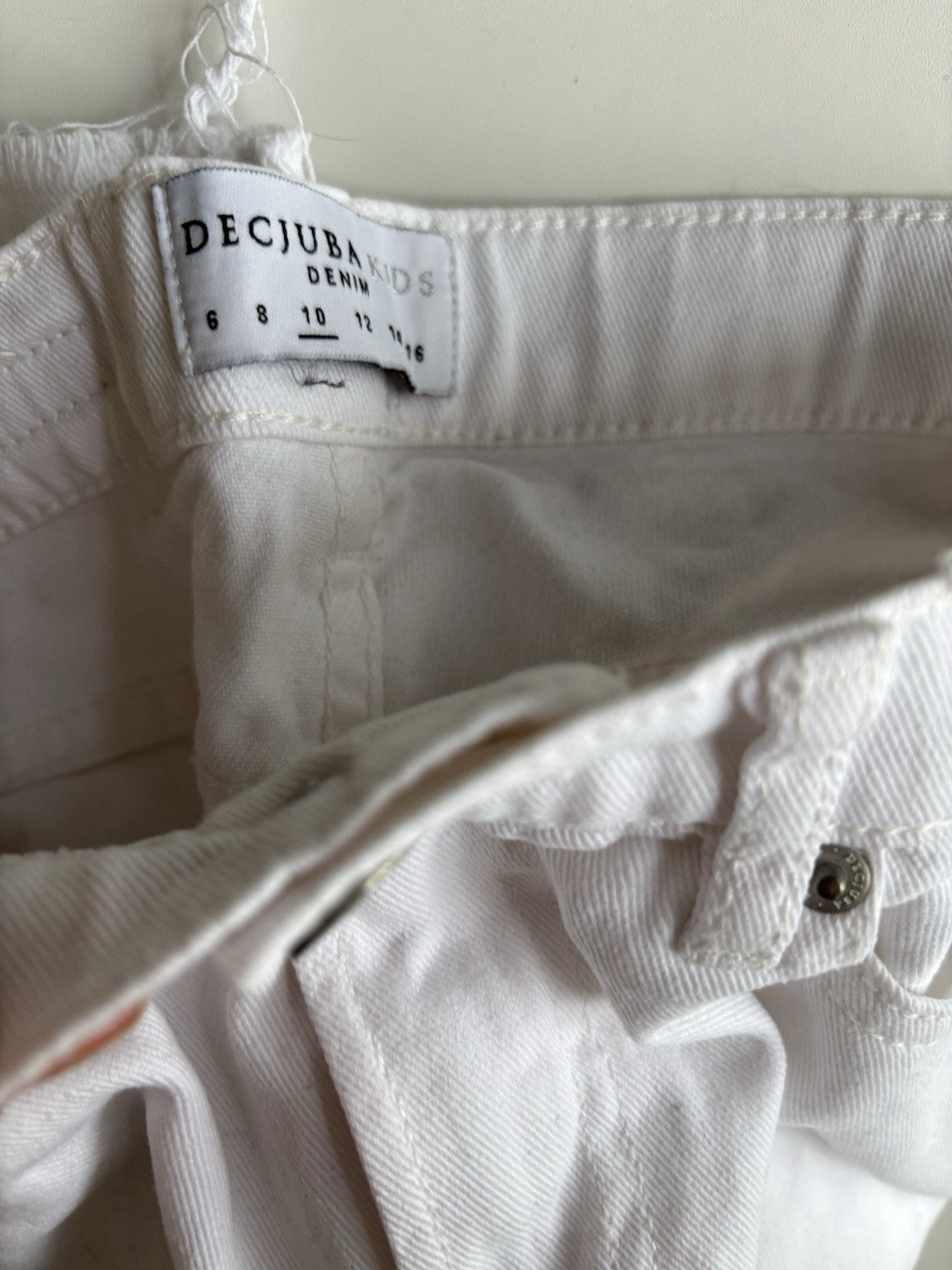 Decjuba Kids girls size 10 white distressed denim jeans pants, VGUC