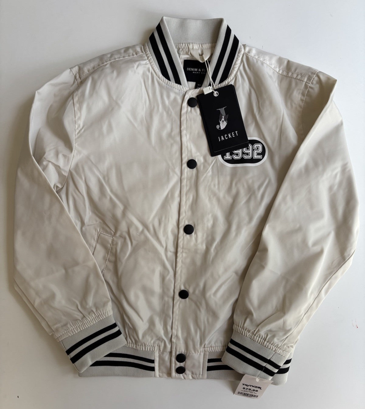 Denim & Flower kids size 7 black white bomber jacket, BNWT