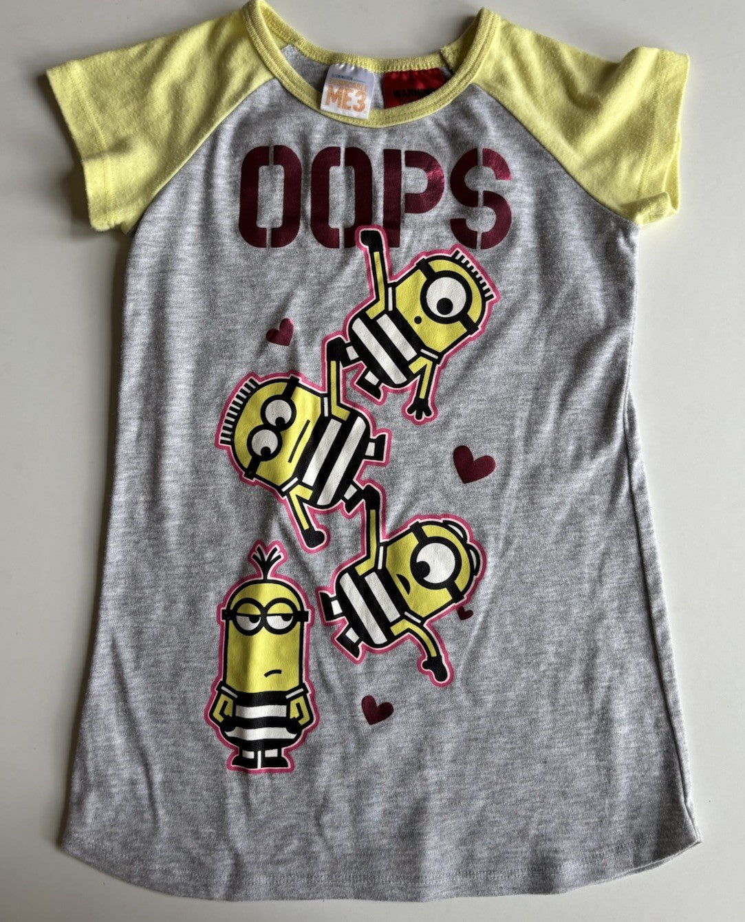 Despicable Me 3 kids girls size 4 grey yellow Minion nightie PJs, GUC