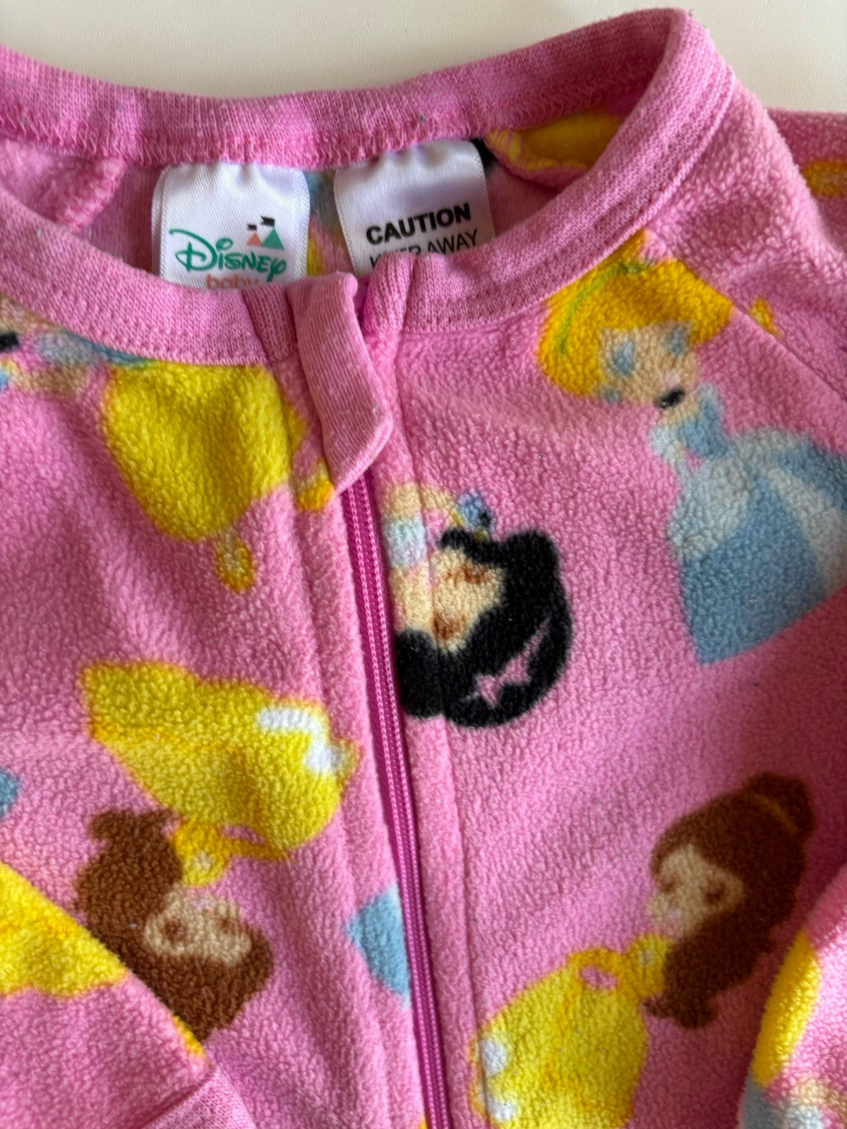 Disney baby girl size 6-12 months pink polar fleece princess one-piece, VGUC
