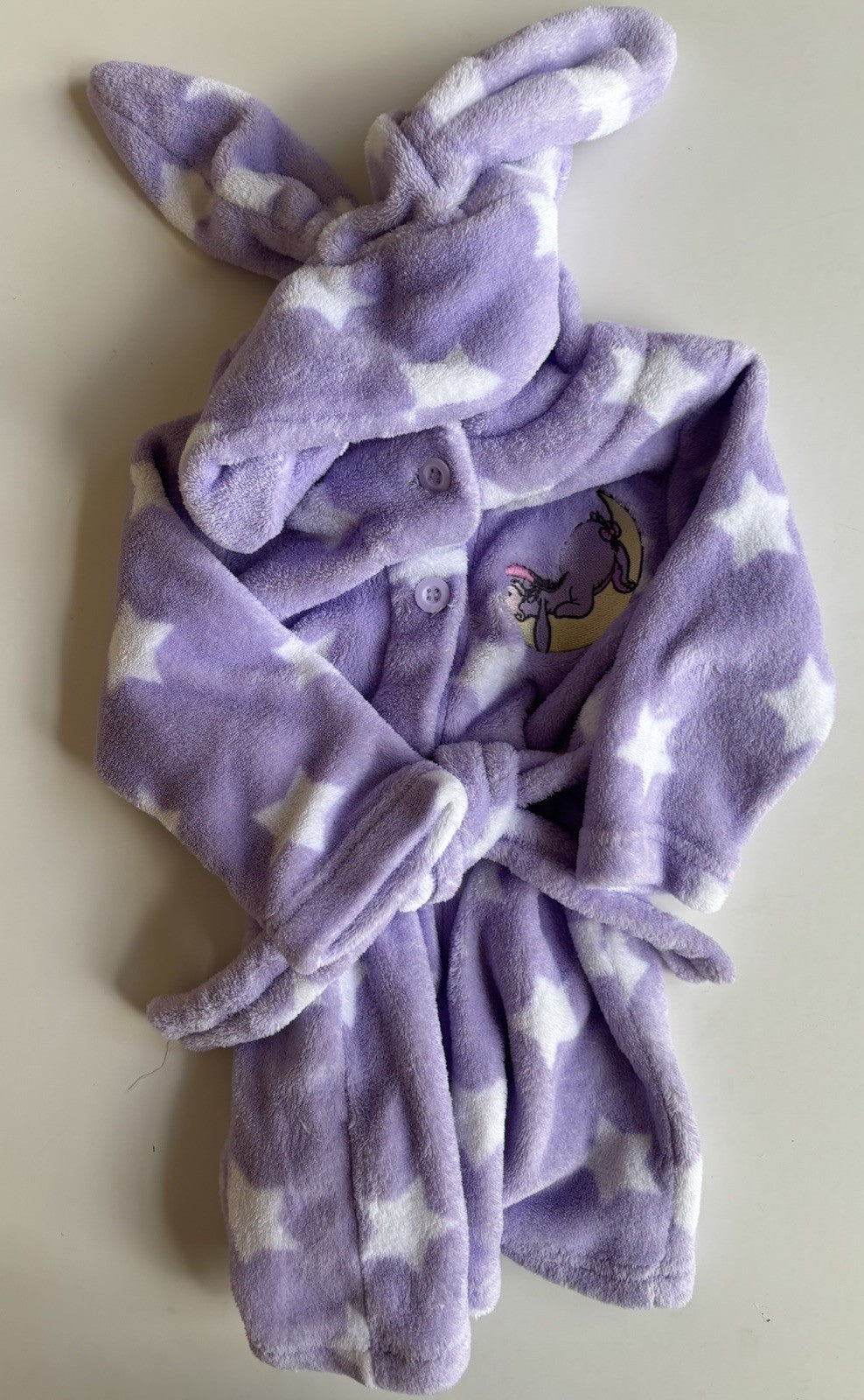 Disney Baby size 2 purple stars Winnie the Pooh Eeyore velour dressing gown VGUC
