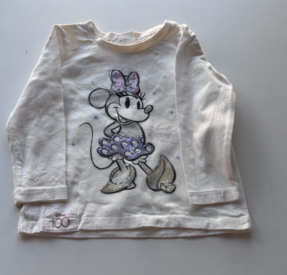 Disney kids girls toddler size 2 white Minnie Mouse long sleeve tshirt, VGUC