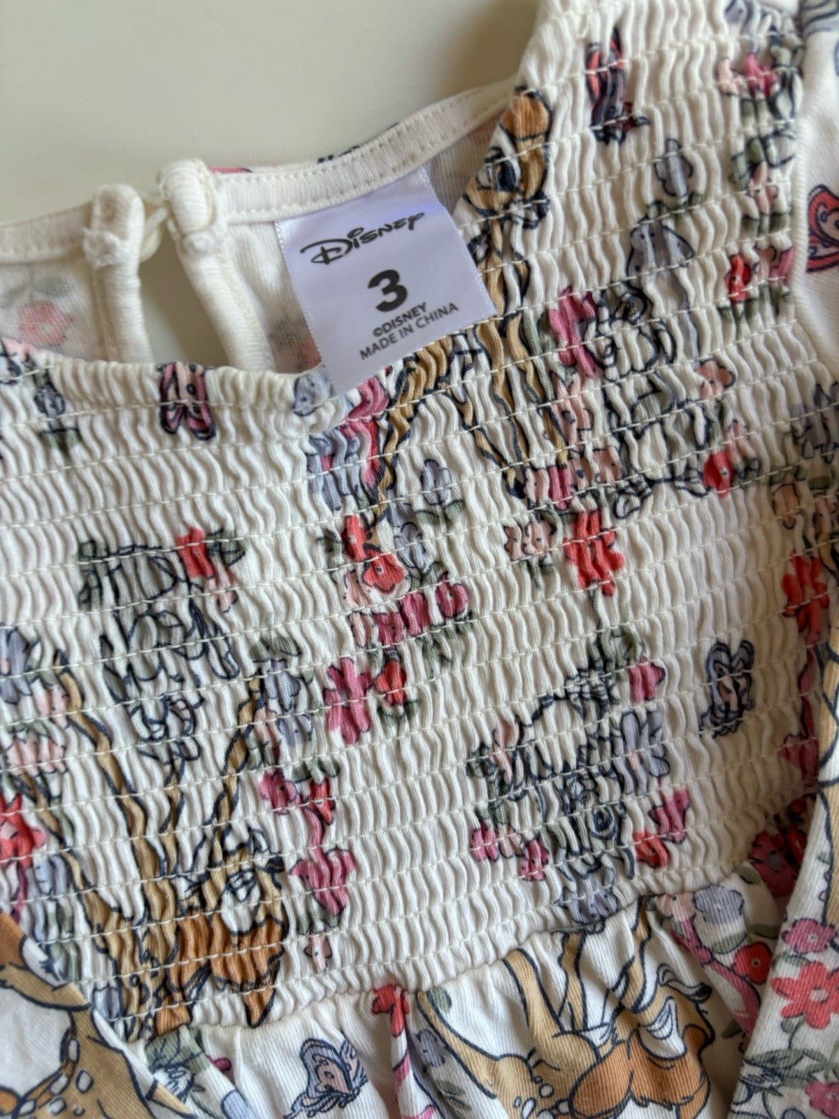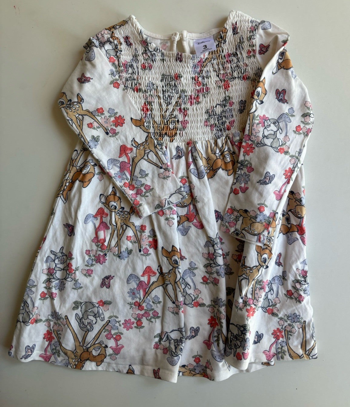 Disney kids girls toddler size 3 white pink Bambi long sleeve dress, VGUC
