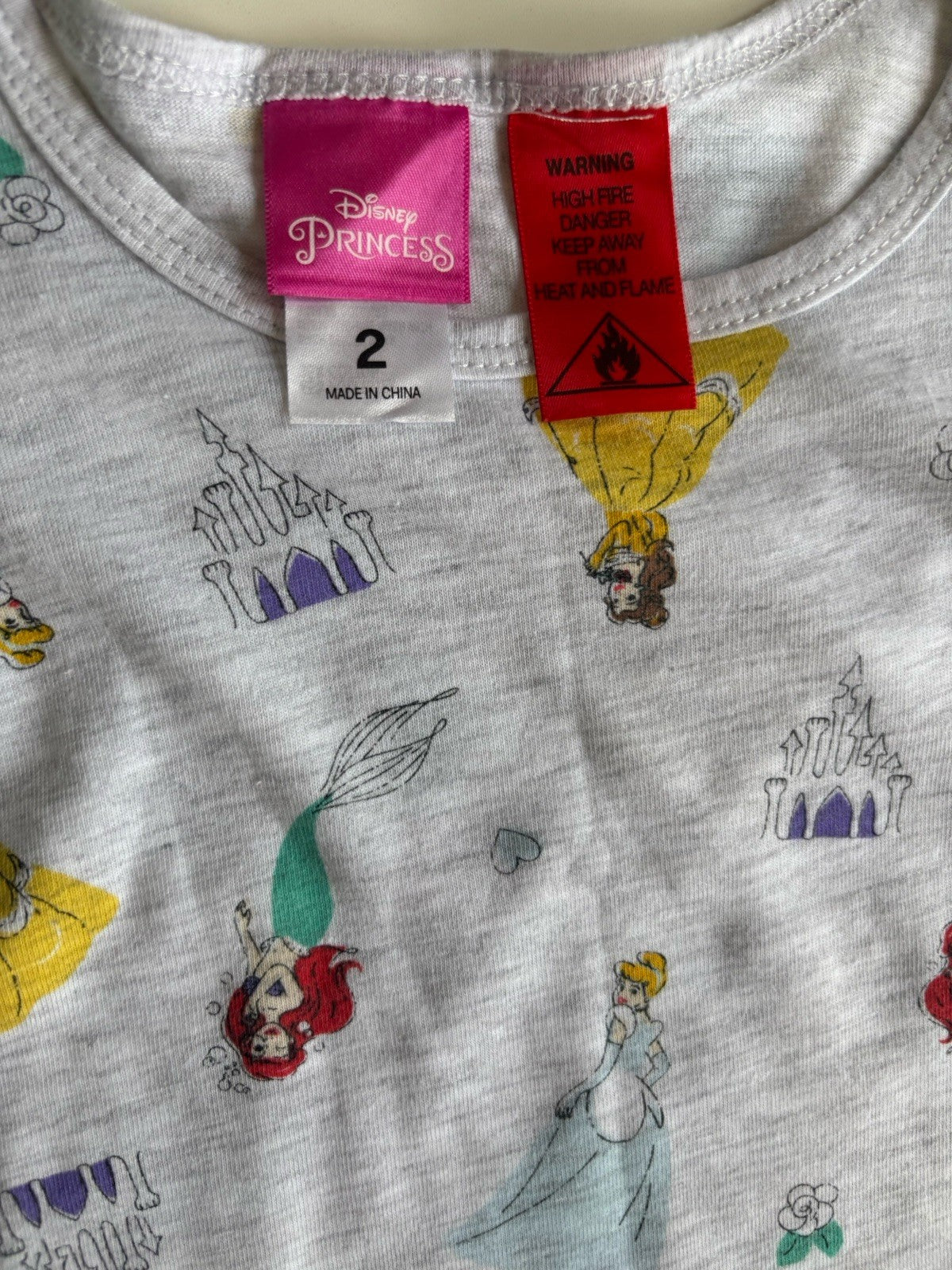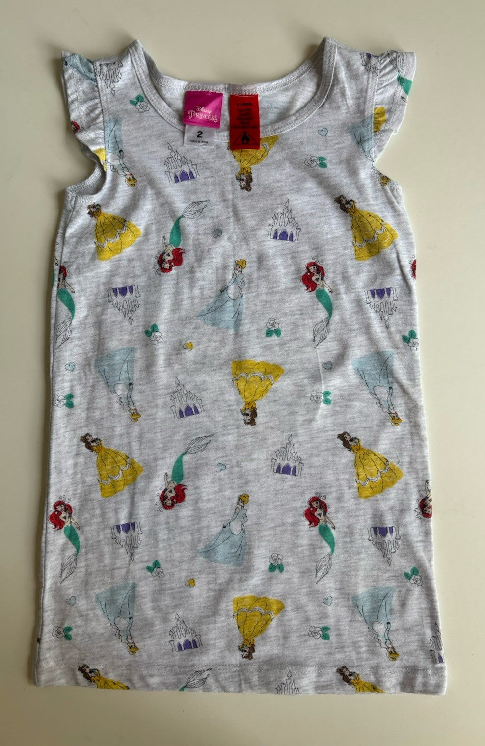 Disney Princess kids girls toddler size 2 grey character nightie PJs, VGUC