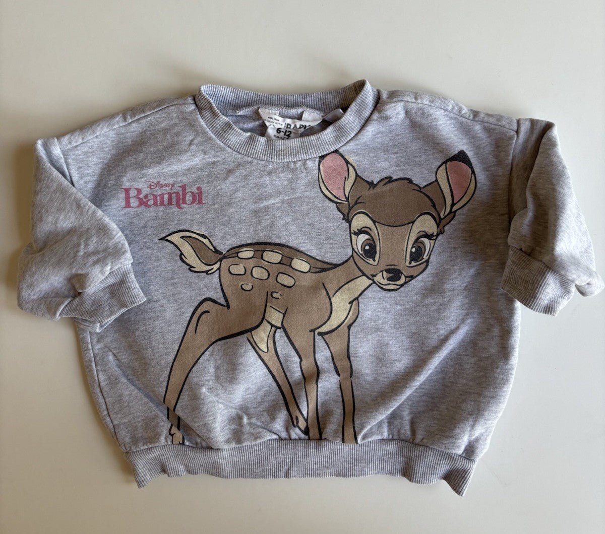Disney x Cotton On Kids baby girl size 6-12 months grey Bambi jumper, VGUC