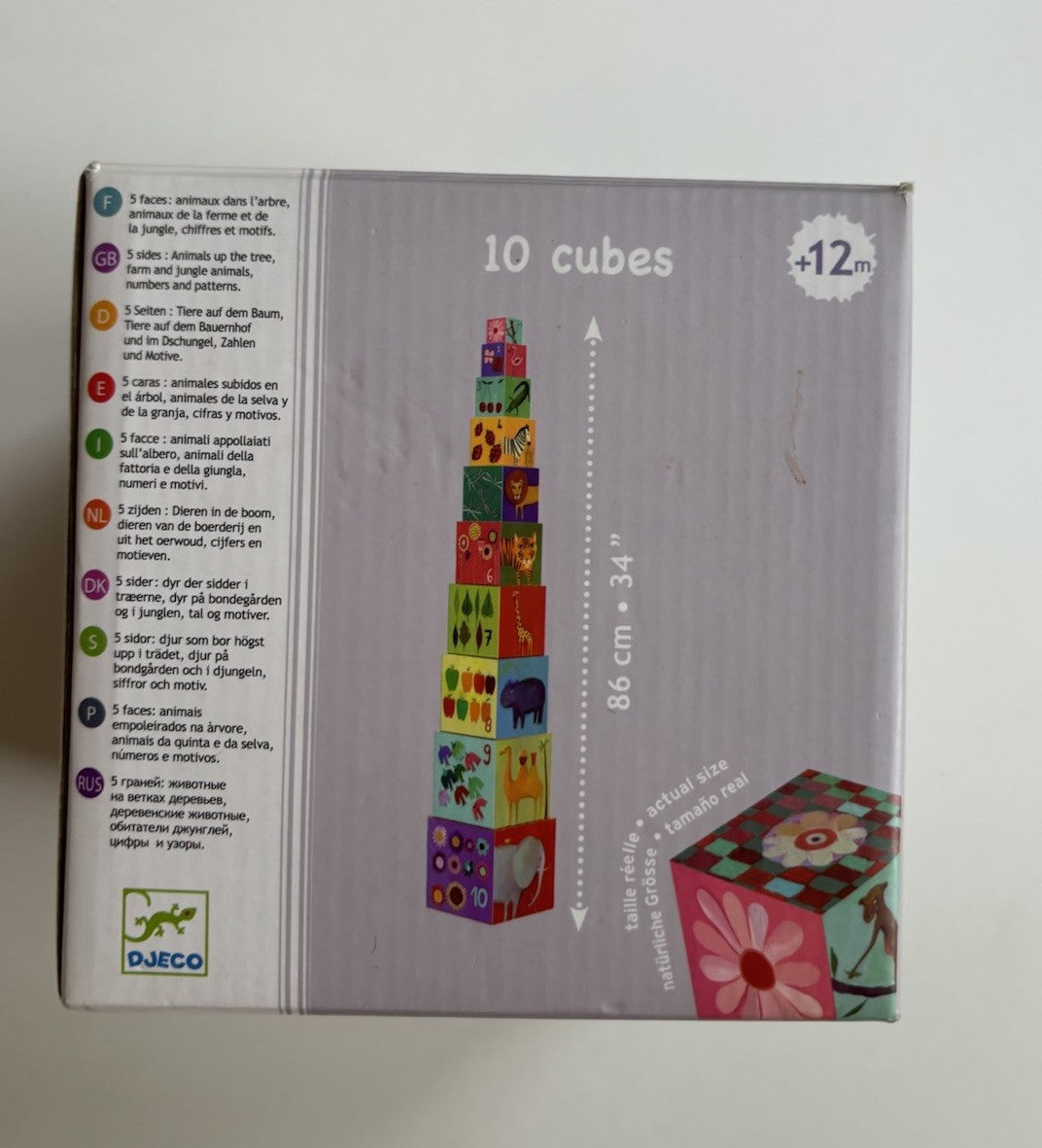 Djeco x10 stacking cubes 12 months+ numbers nature animals, VGUC