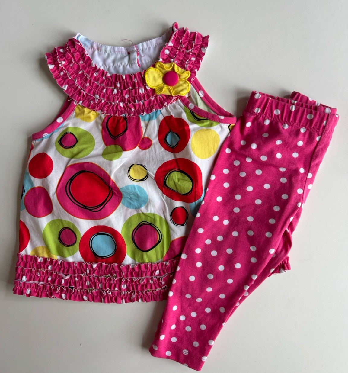 D'Lish baby girl size 12-18 months pink spot leggings tunic top set, VGUC