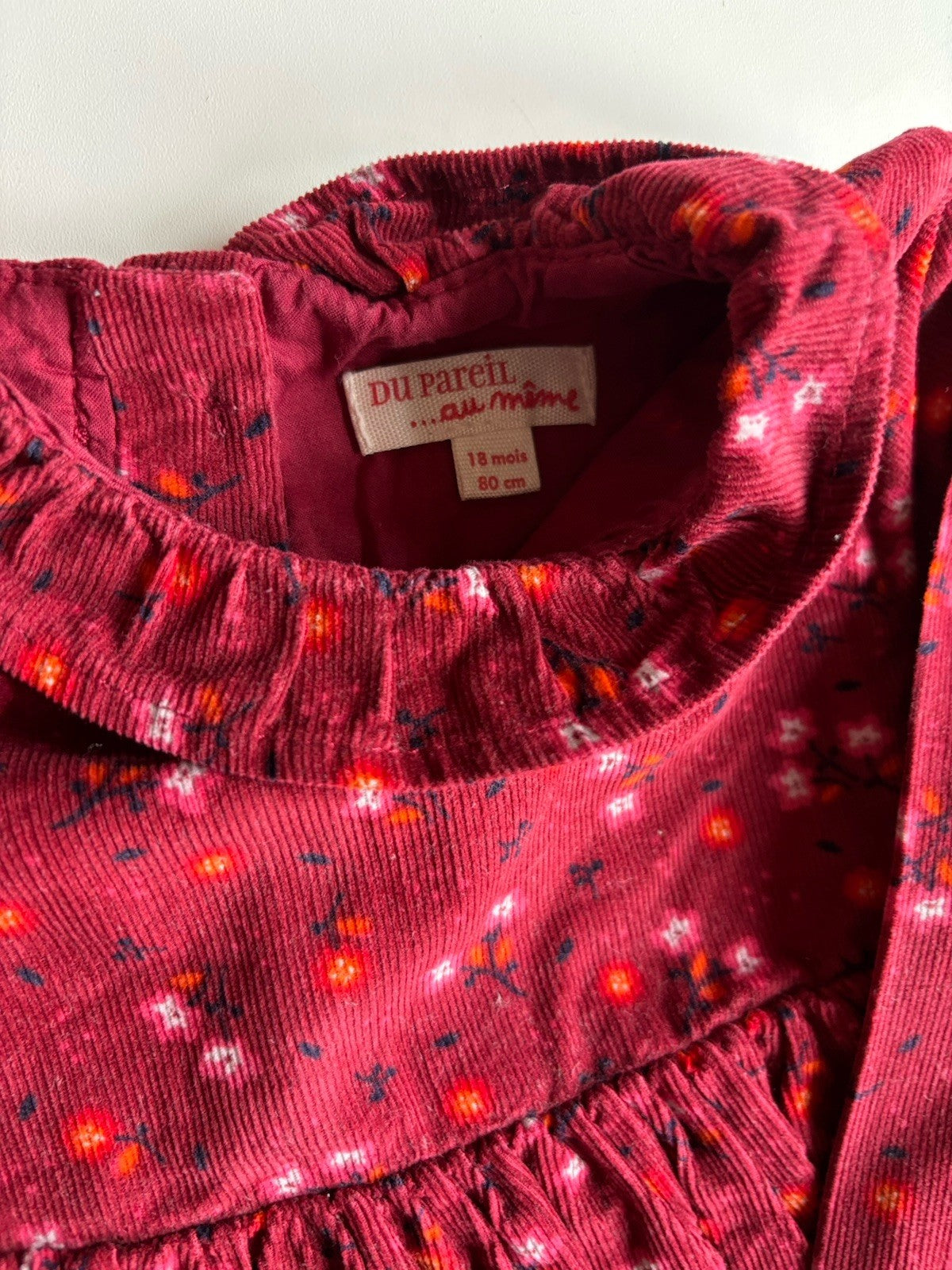 Du Pareil au Meme baby girl size 12-18 months maroon cord floral dress