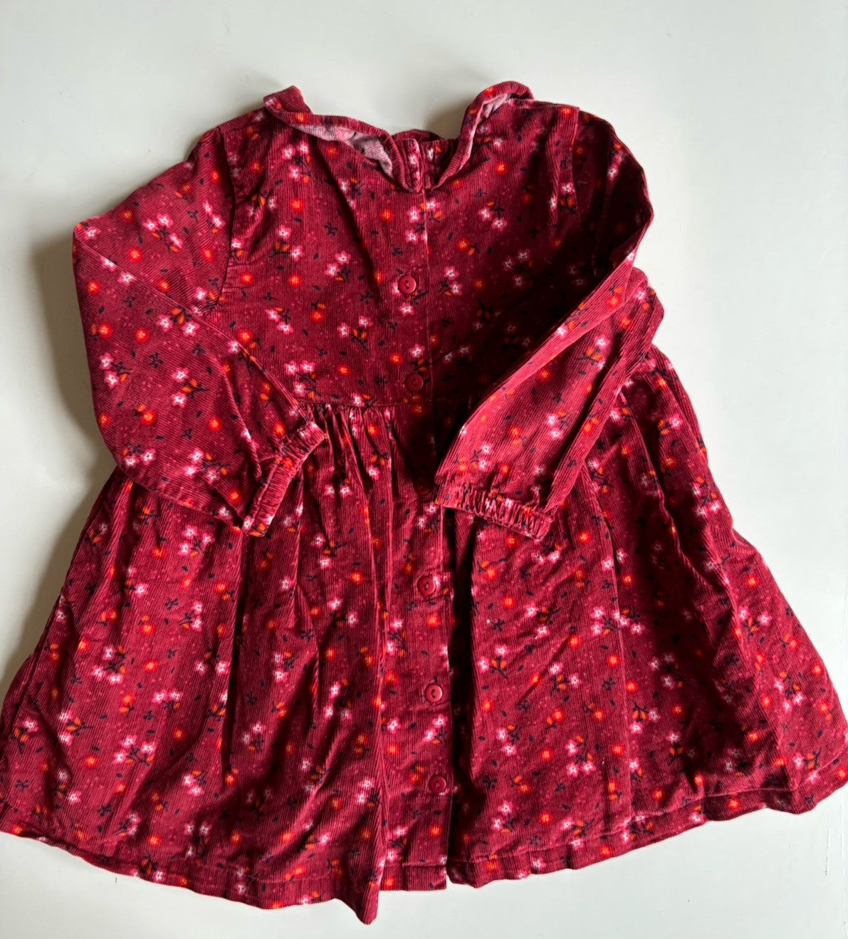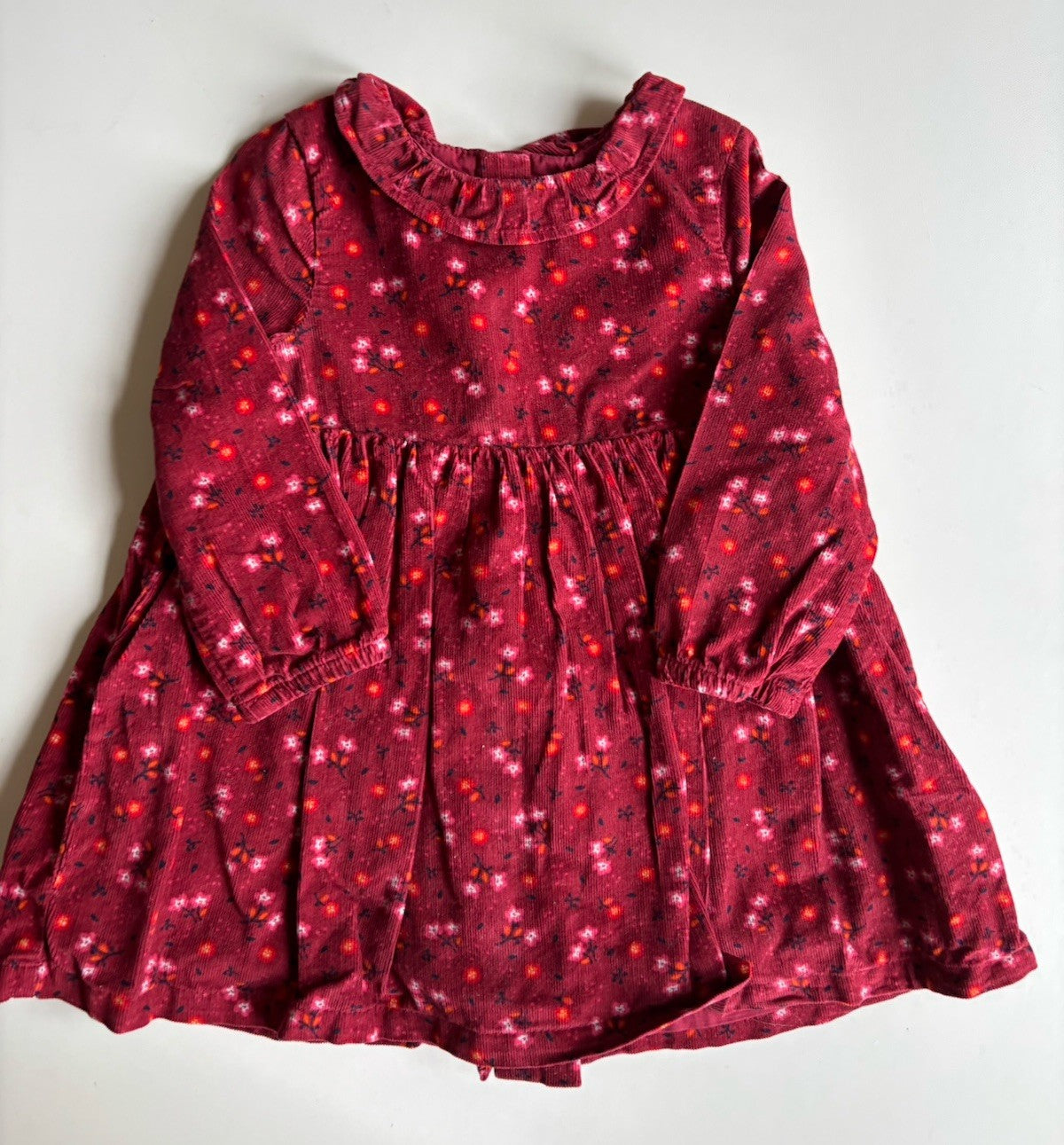 Du Pareil au Meme baby girl size 12-18 months maroon cord floral dress, VGUC