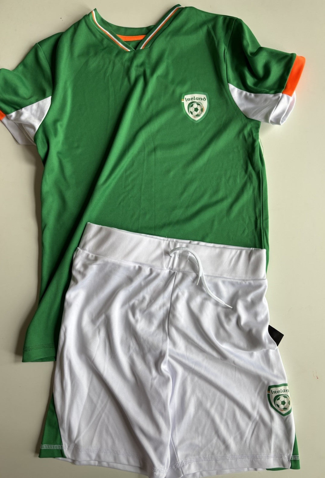 Dunnes kids boys size 10-11 years Ireland soccer kit shorts top green white BNWT