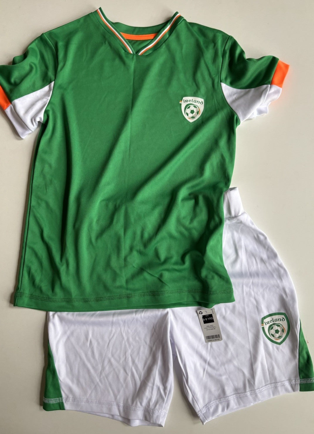 Dunnes kids boys size 8-9 years Ireland soccer kit shorts top green white BNWT