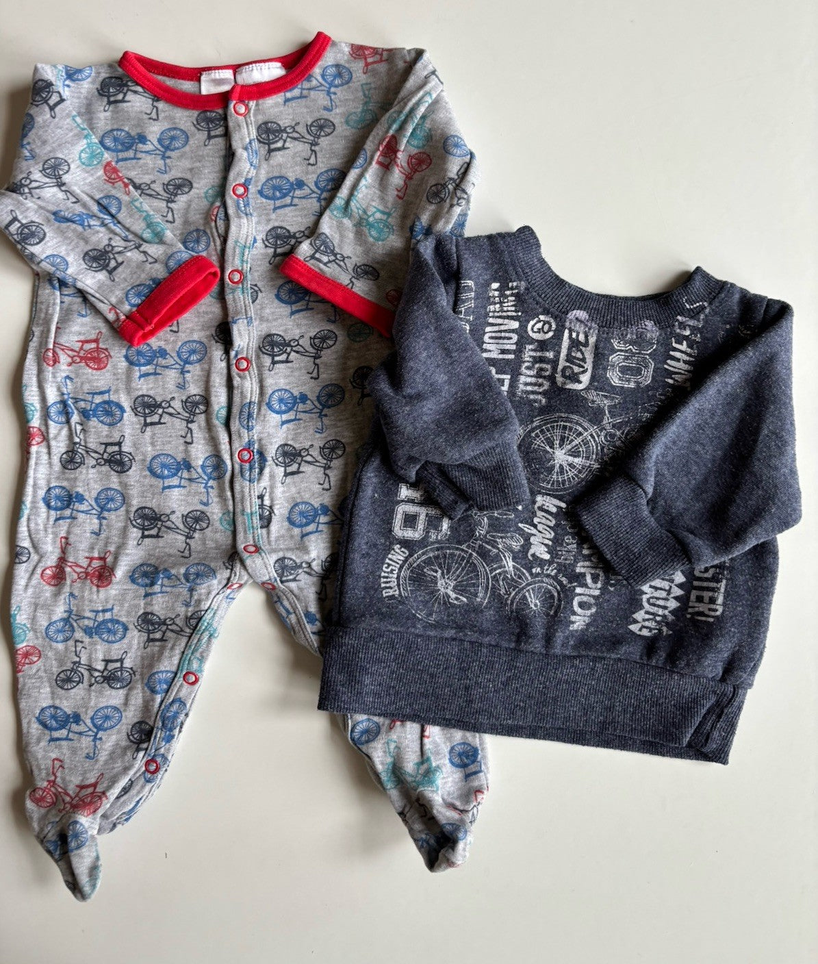 Dymples baby boy size 3-6 months grey bike one-piece blue jumper bundle, VGUC