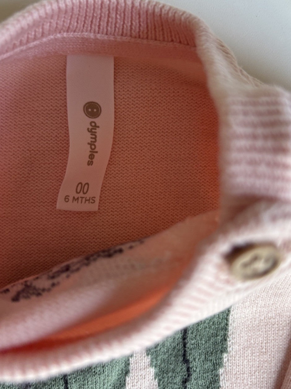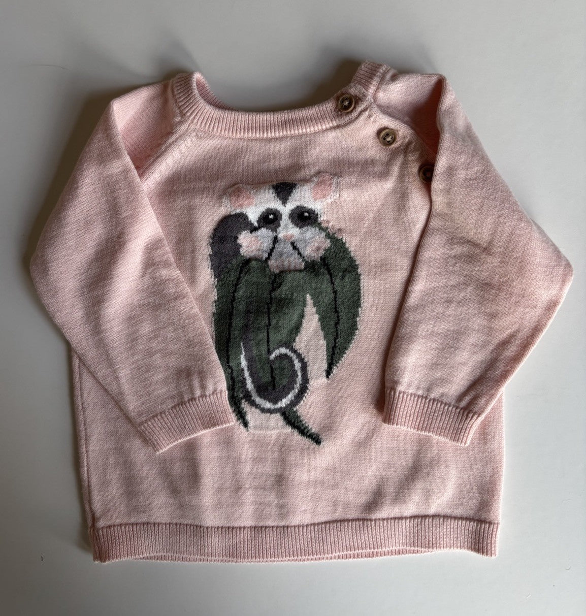 Dymples baby girl size 3-6 months pink knitted jumper possum, VGUC