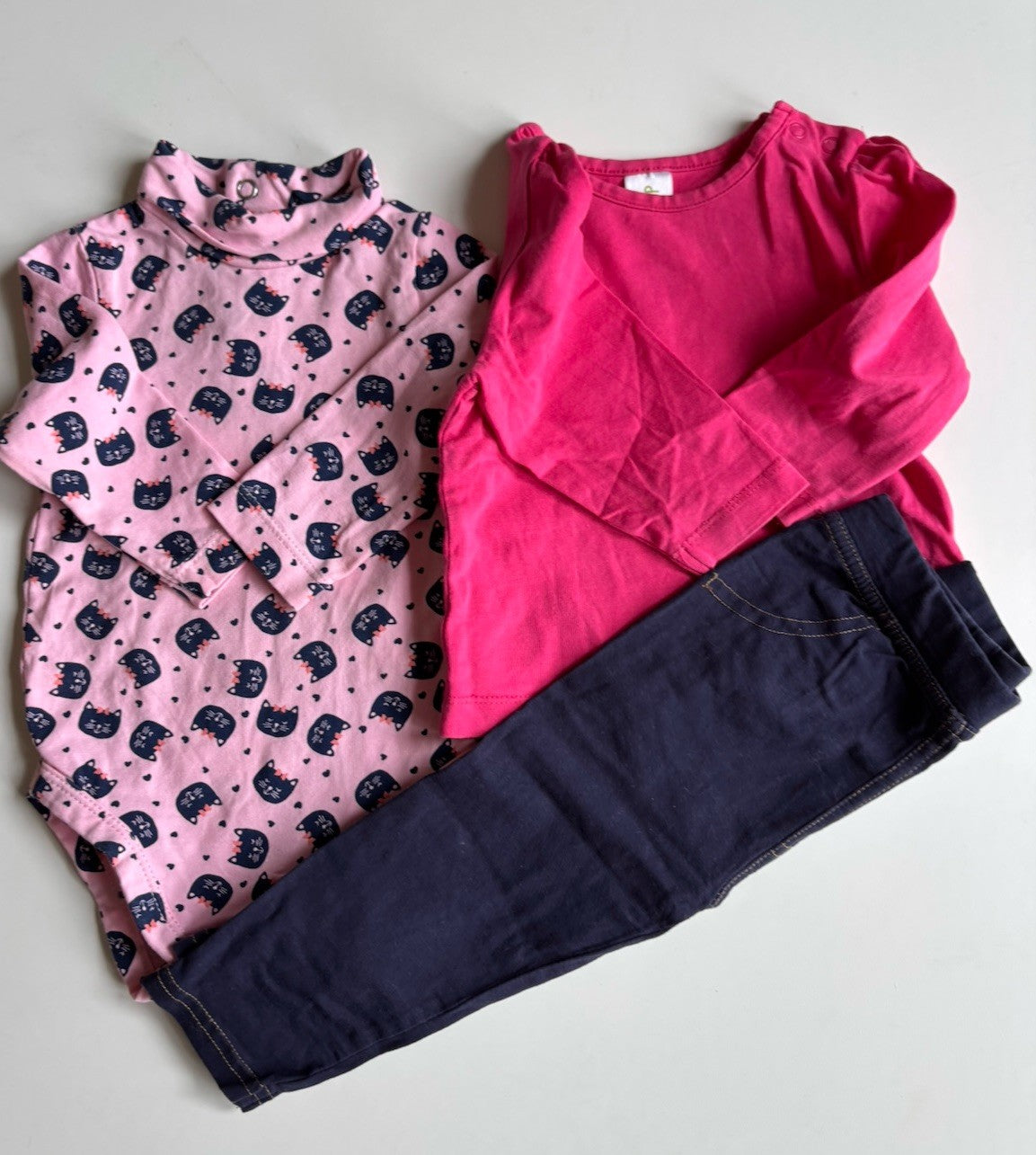 Dymples baby girl size 3-6 months pink tops jeggings cats bundle, VGUC