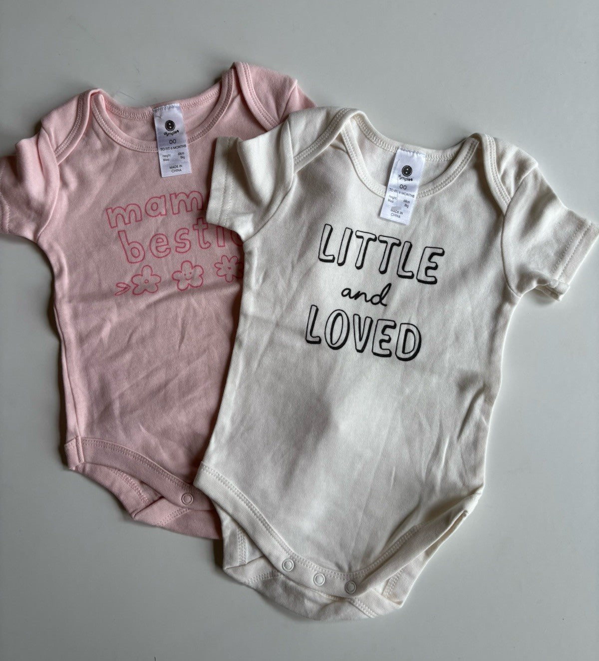Dymples baby girl size 3-6 months x2 t-shirt bodysuits pink white, EUC